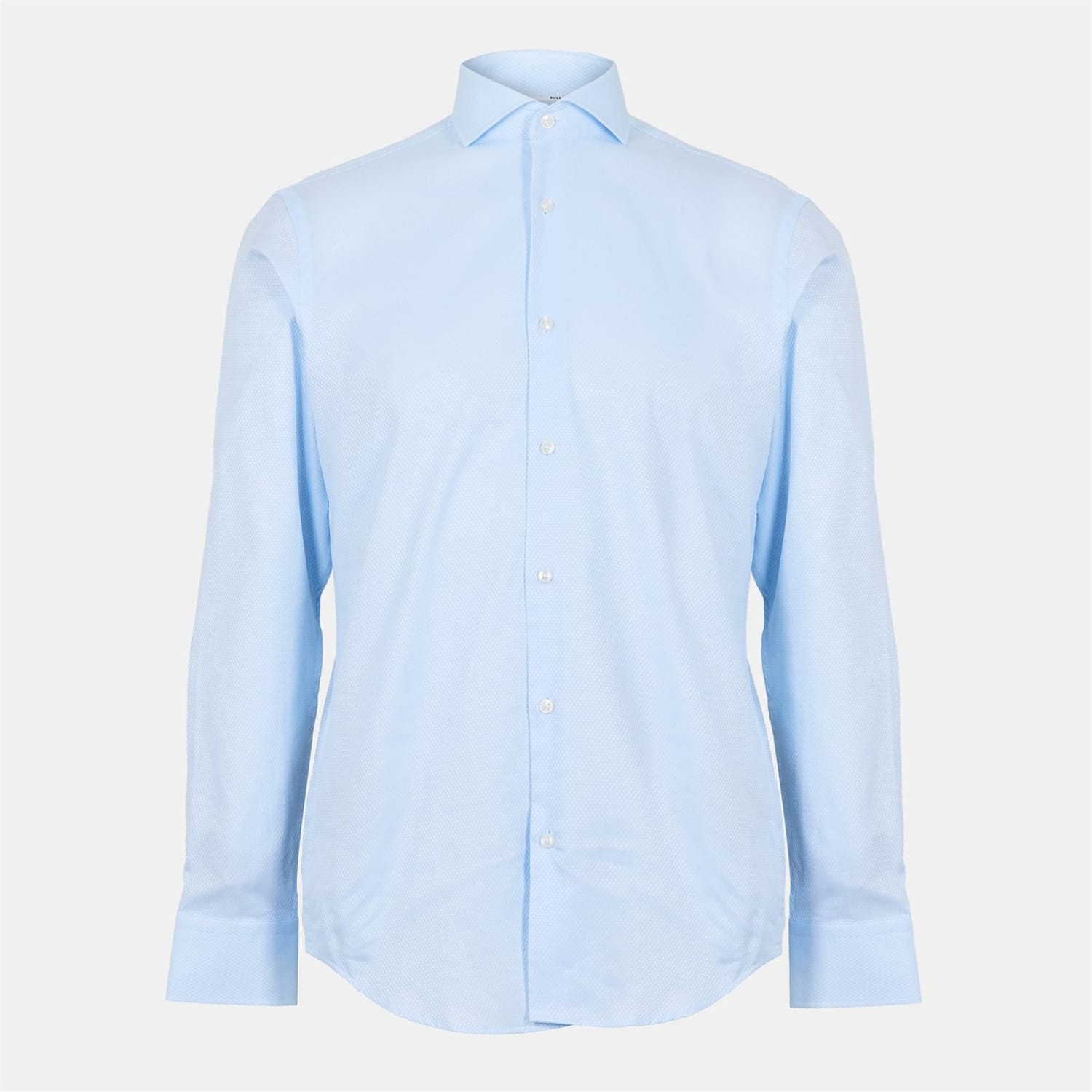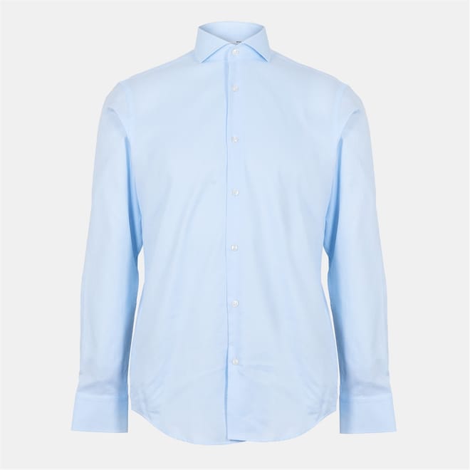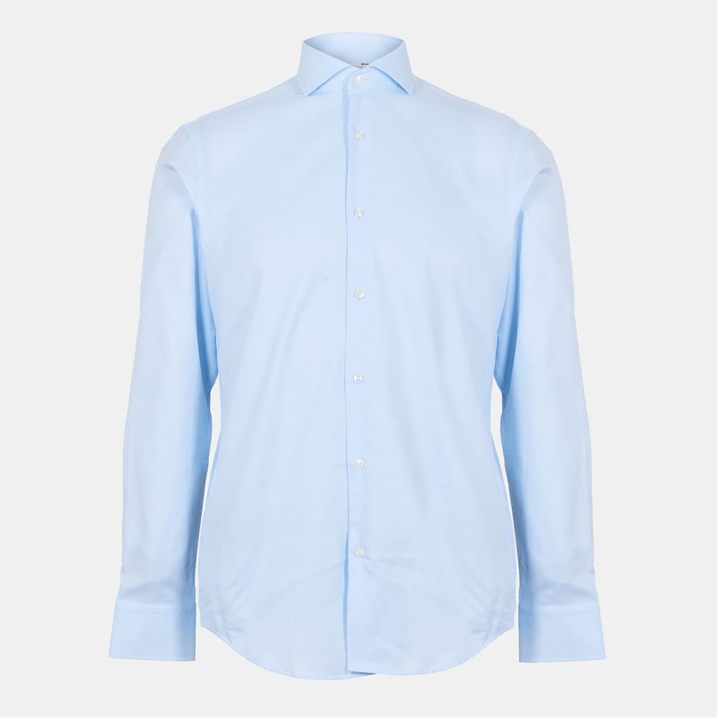 This Boss top, known as Joe, features a solid pattern with long sleeves and a regular fit. It is designed with a spread collar and a full button closure, complemented by a button placket. The shirt sleeve style is finished with a barrel cuff, making it suitable for all seasons. -