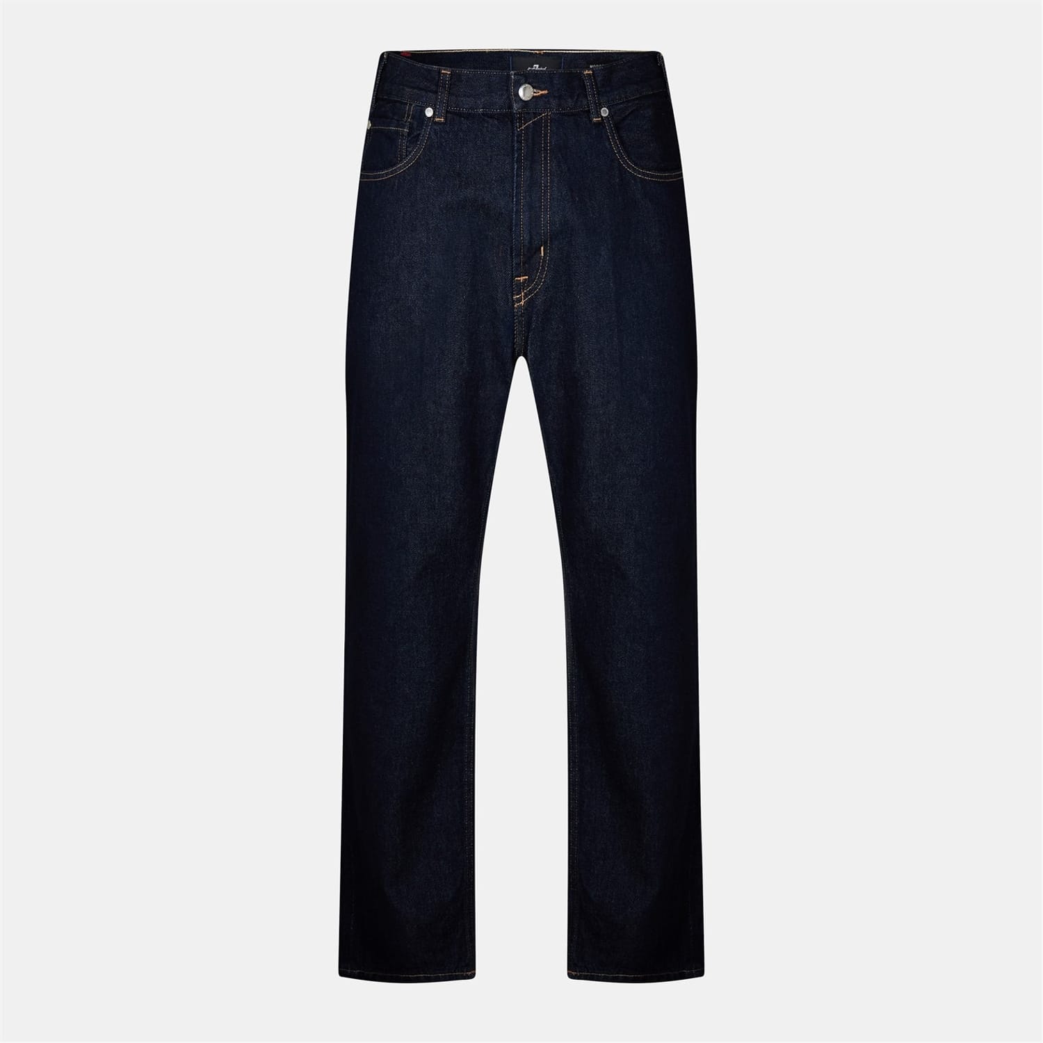 Discover the timeless appeal of 7 for all mankind jeans, featuring a straight fit and a classic five-pocket design. These jeans are equipped with a zip fly, front button, and belt loops for a secure fit. The contrast stitching adds a touch of detail, while the front, back, and coin pockets offer practicality and style. -
