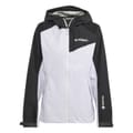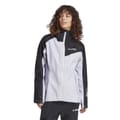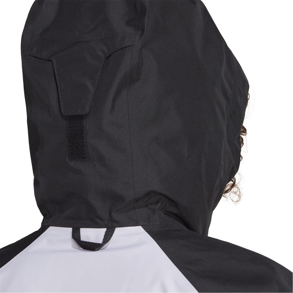 This adidas shell jacket features a hooded neck and a full zipper closure, offering a regular fit. The jacket is designed with a water-repellent finish and a straight hem. It includes zipped pockets and a bound cuff for added functionality. The color block pattern and logo embellishment add a stylish touch to this short-length jacket. -