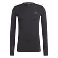 This adidas top is designed for activewear and gym enthusiasts. Featuring a crew neck and long sleeves, it offers a compression fit with fitted cuffs for optimal performance. The solid pattern is complemented by a logo embellishment, making it a stylish choice for your workout wardrobe. -