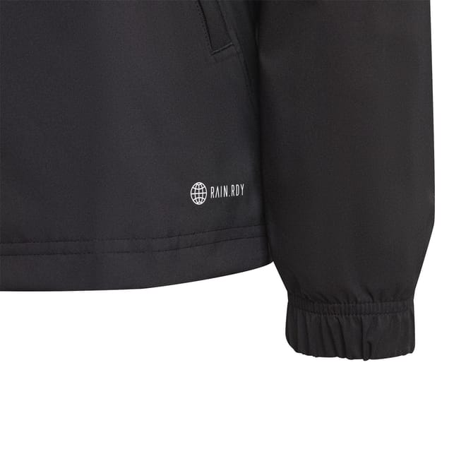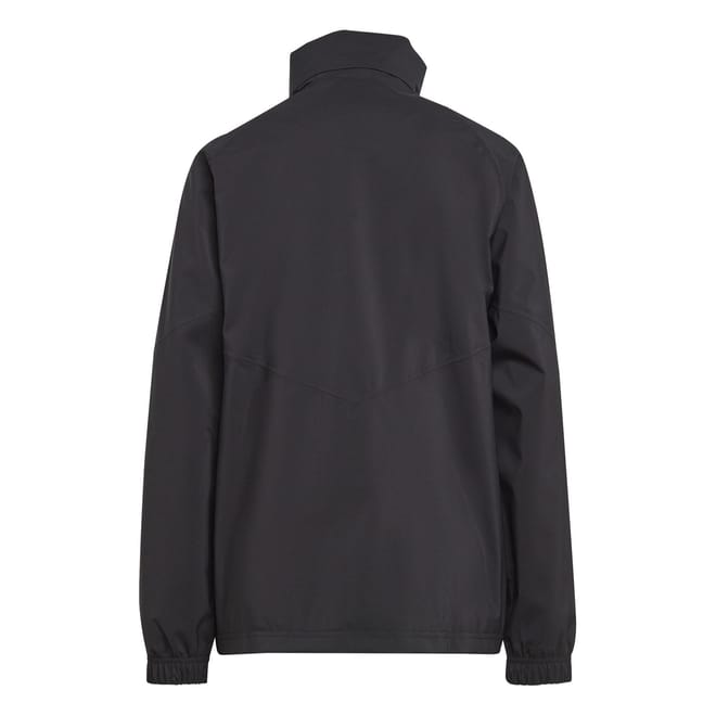 This adidas rain jacket is designed for functionality and style. Featuring a high collar and a regular fit, it offers a water-repellent finish to keep you dry. The jacket includes a full zipper closure, elasticated cuffs, and a straight hem. Embellished with a crest logo, three-bar logo, and side stripes, it also has practical zipped pockets. The raglan sleeves enhance mobility, making it a versatile choice for wet weather. -