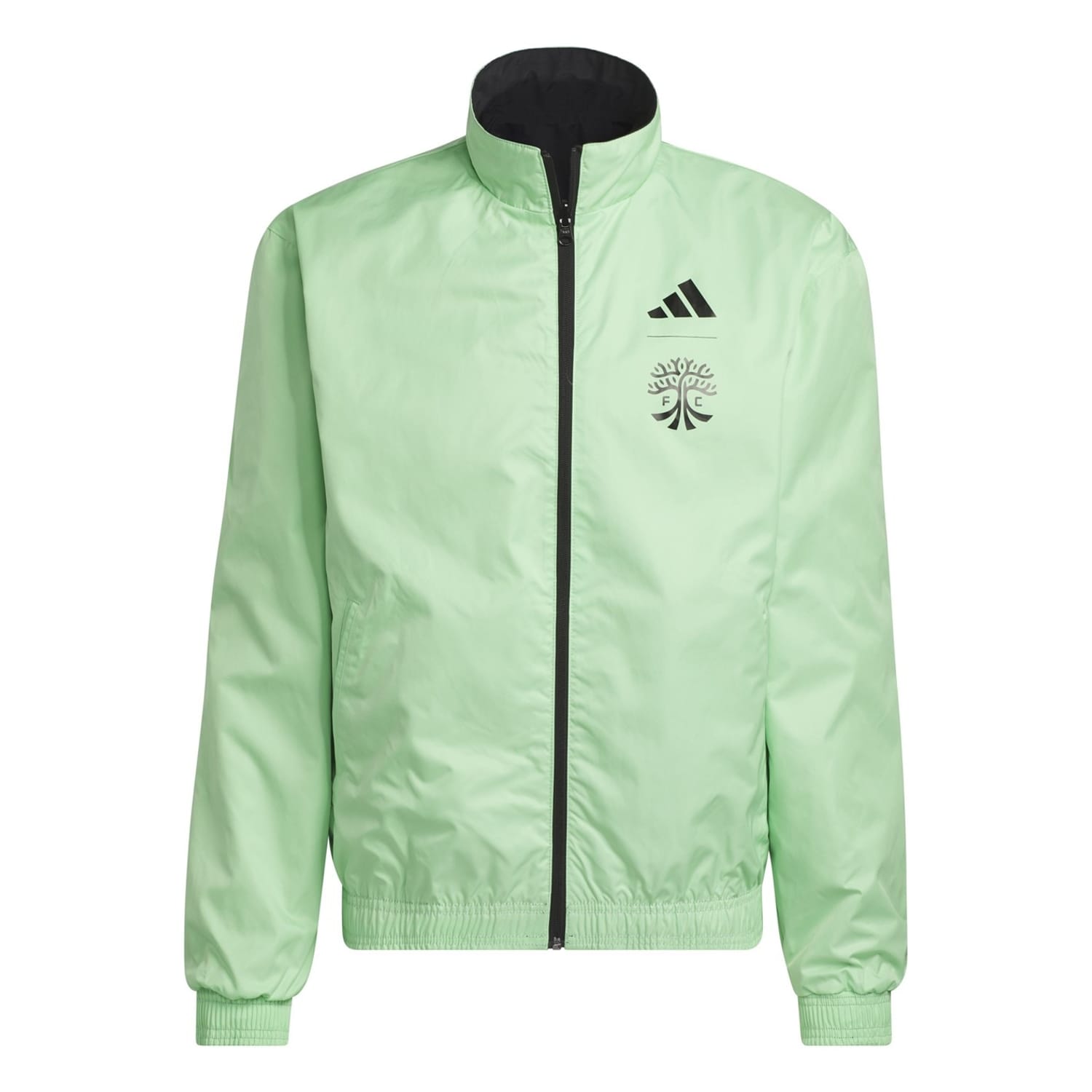 This adidas track jacket features a high collar and a regular fit, offering a comfortable and stylish look. The short length and solid pattern make it versatile for various occasions. It includes a zipper closure and ribbed cuffs for added comfort. Embellished with a chest logo and zipped pockets, this jacket combines functionality with a sleek design. The elasticated hem ensures a snug fit. -
