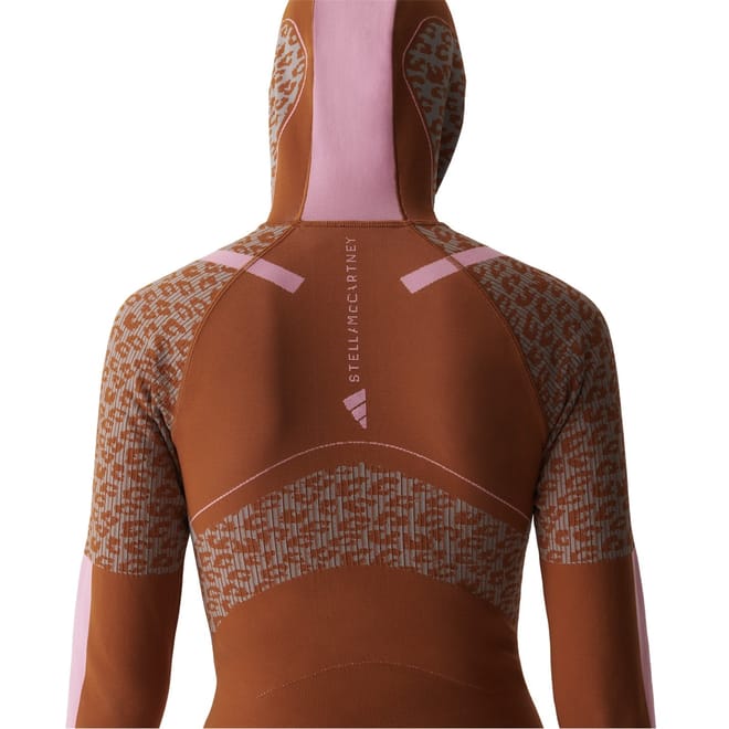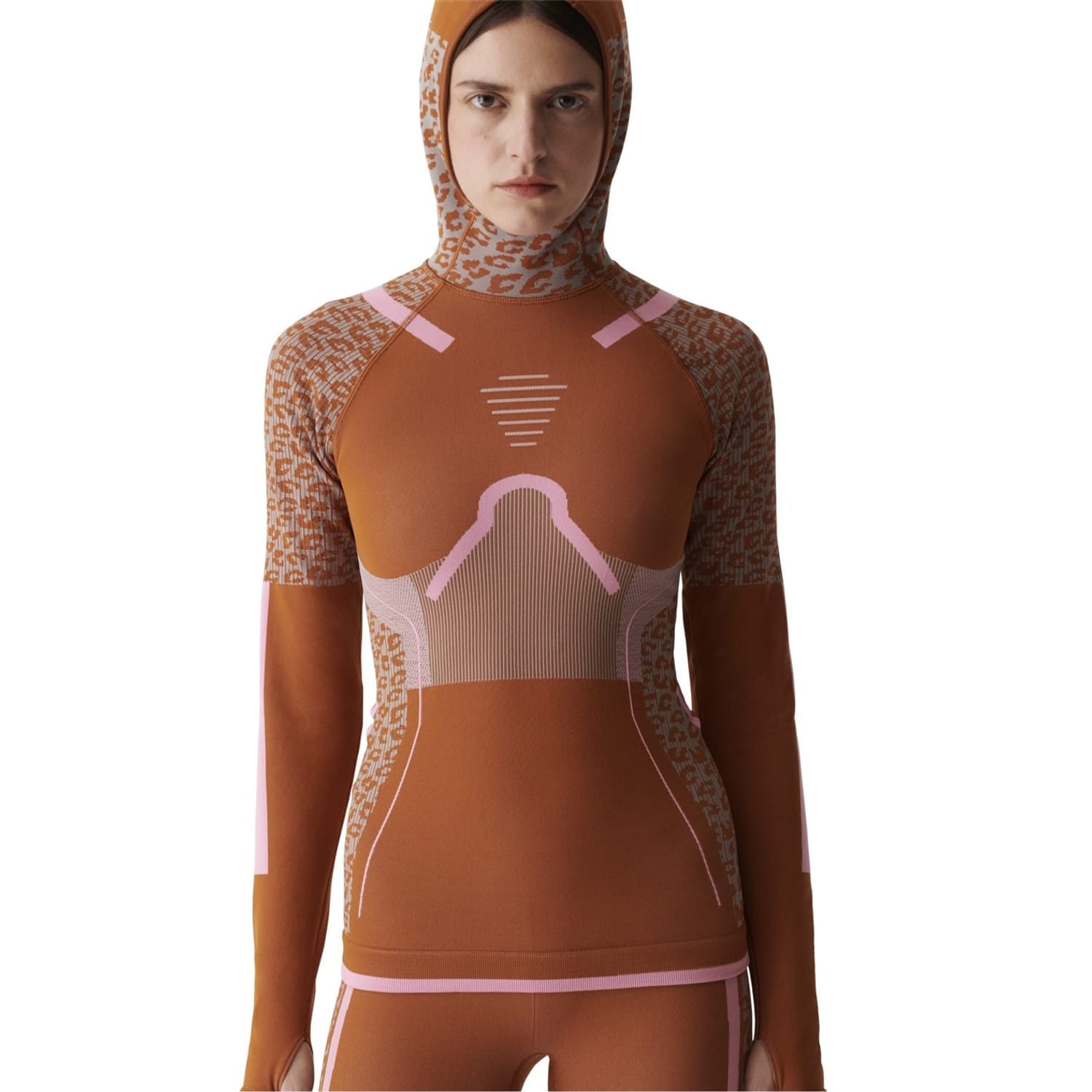 This adidas top is designed for performance with a snug fit and a hooded neck. Featuring long raglan sleeves with thumbhole cuffs, it ensures comfort and warmth during winter. The leopard pattern adds a stylish touch to this functional piece. -