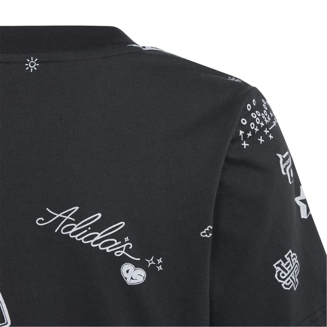 This adidas cropped top features a crew neck and short sleeves, offering a regular fit. The ribbed collar adds a touch of detail, while the graphic print enhances its visual appeal. Ideal for casual wear, this top combines style and comfort effortlessly. -
