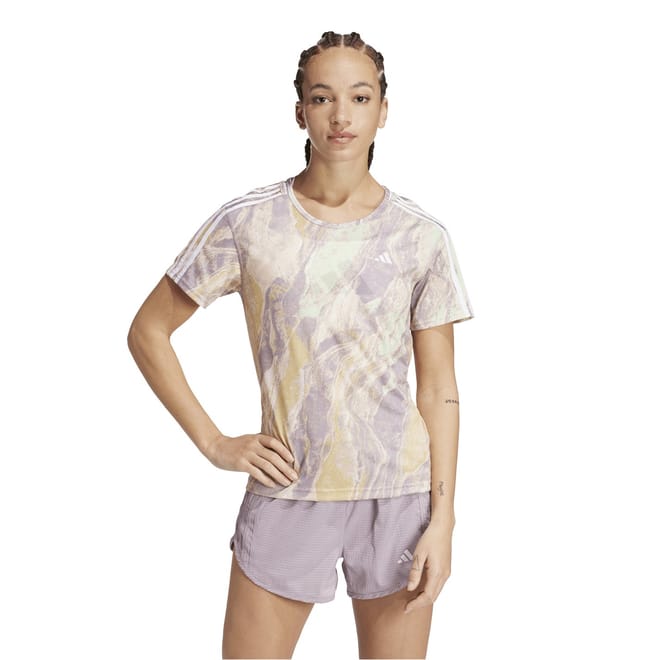This adidas top is designed for sporting activity, featuring a marble pattern and a crew neck. The short raglan sleeves and regular fit ensure comfort and performance. -