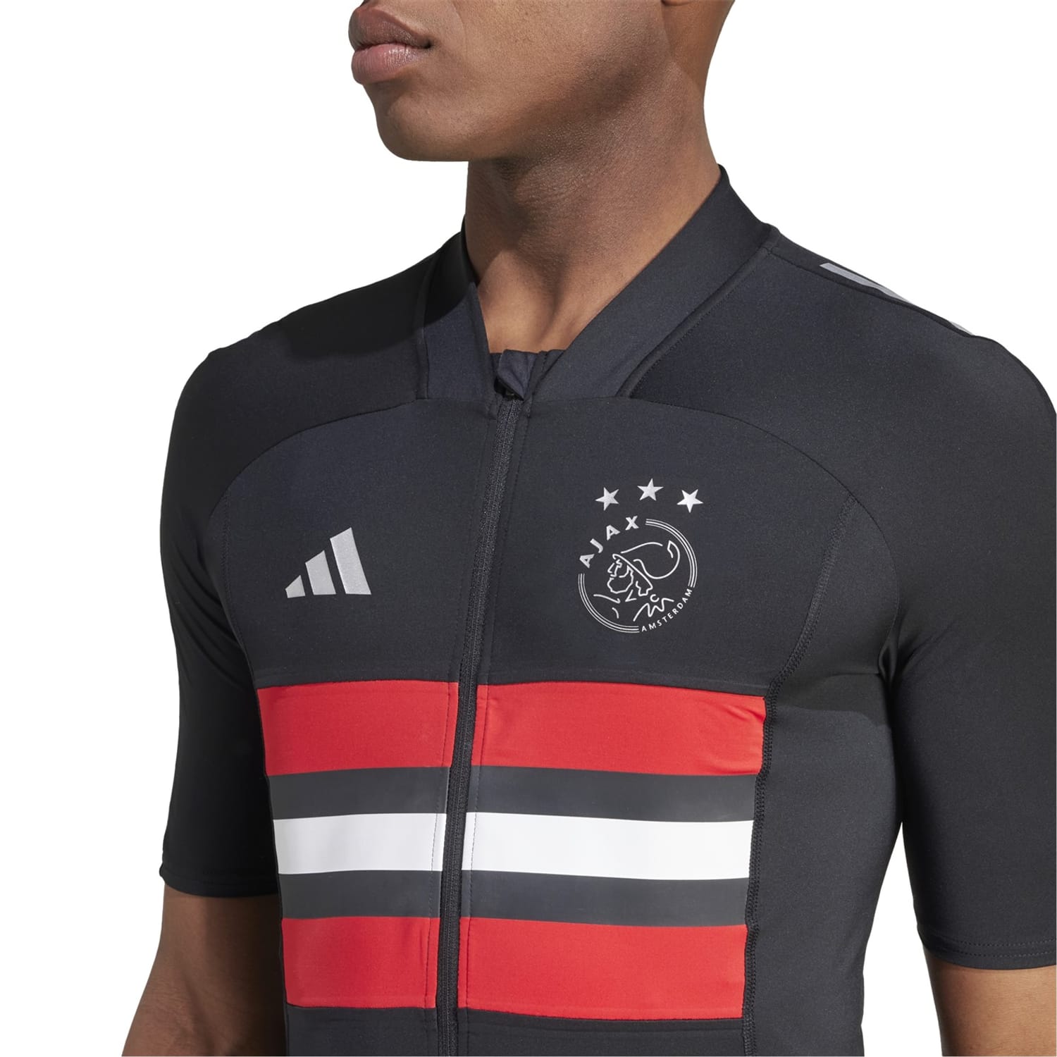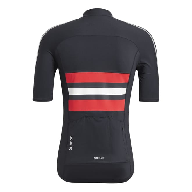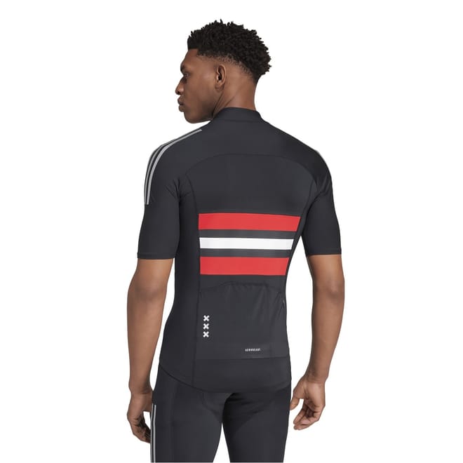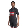This adidas top is designed for summer with a slim fit and short sleeves. It features a band collar and a mock neck, complemented by a full zipper closure. The horizontal stripe pattern adds a stylish touch, while the chest logo and front pocket provide functional embellishments. Fitted cuffs complete the look, making it a versatile addition to your wardrobe. -