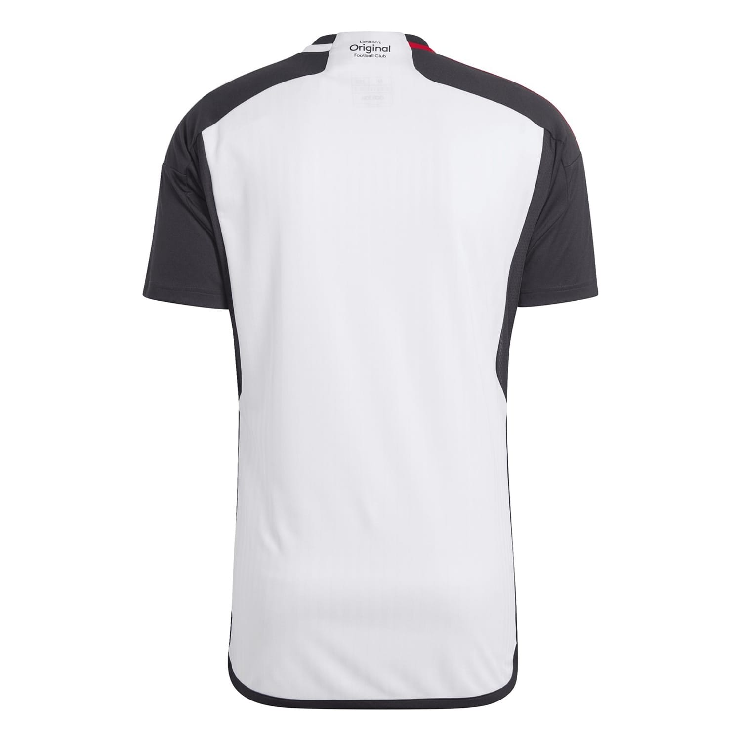 This adidas top features a regular fit with short raglan sleeves and a band collar. The design includes a woven cuff and is adorned with a logo print and text graphic. Embellishments such as a shield, logo, and contrast detail add distinctive touches to this piece, making it a standout in the domestic and replica collections. -