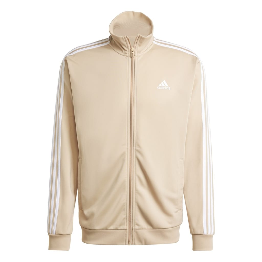 Elevate your activewear collection with this adidas full track suit. Featuring a funnel neck and long plain sleeves, this woven set is designed for comfort and style. The sweatshirt showcases the iconic three stripes pattern, complemented by a logo, side stripes, and a practical front pocket. Ideal for track activities, this ensemble combines functionality with a sleek aesthetic. -