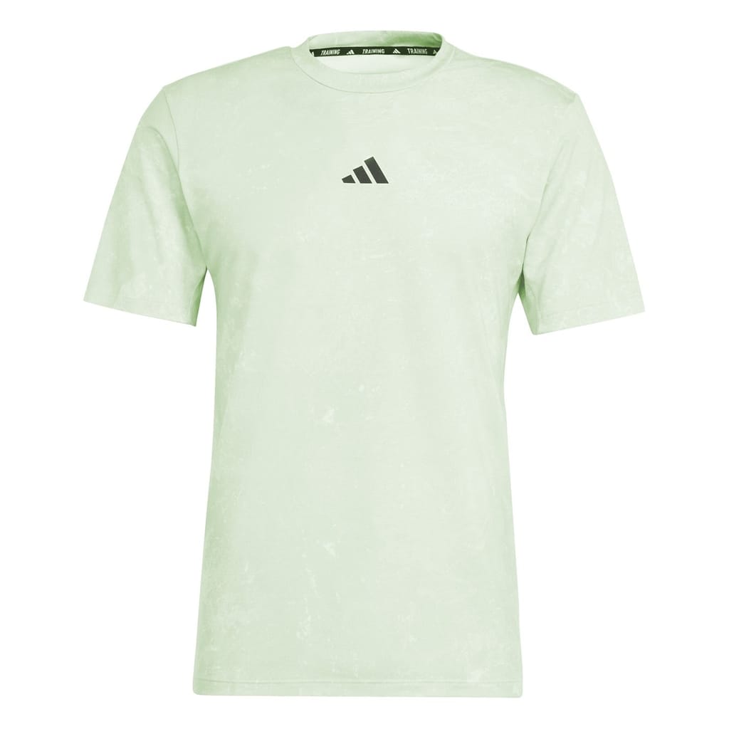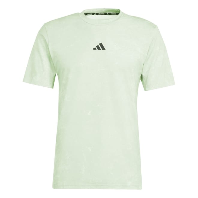 This adidas top is designed for activewear and gym enthusiasts. Featuring a crew neck and short sleeves, it offers a regular fit for optimal performance. The wash pattern adds a stylish touch, while the logo embellishment highlights the brand's iconic identity. -