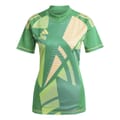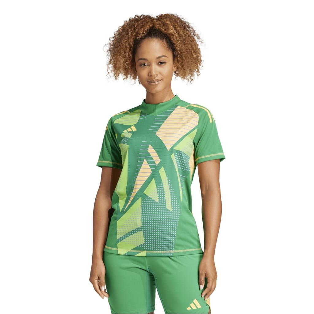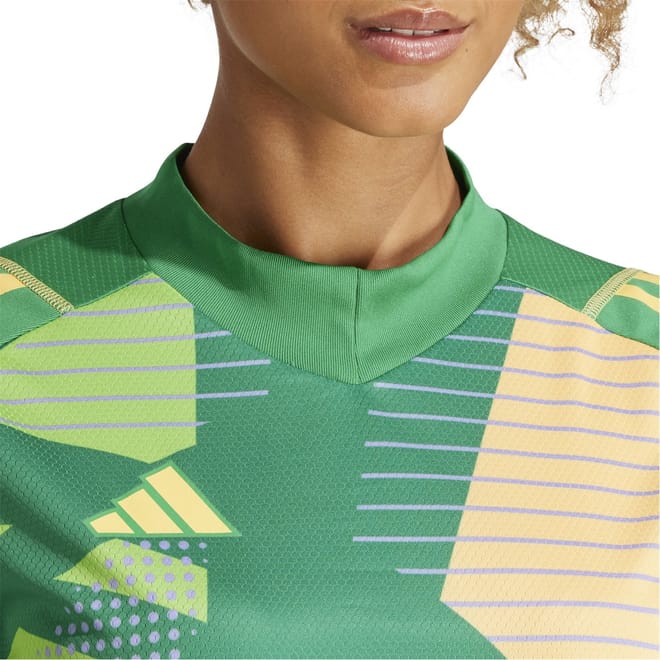 This adidas top features a mock neck and short raglan sleeves, offering a regular fit. The graphic print with an abstract pattern adds a stylish touch, while the band collar enhances its modern appeal. Perfect for those seeking a blend of comfort and contemporary design. -