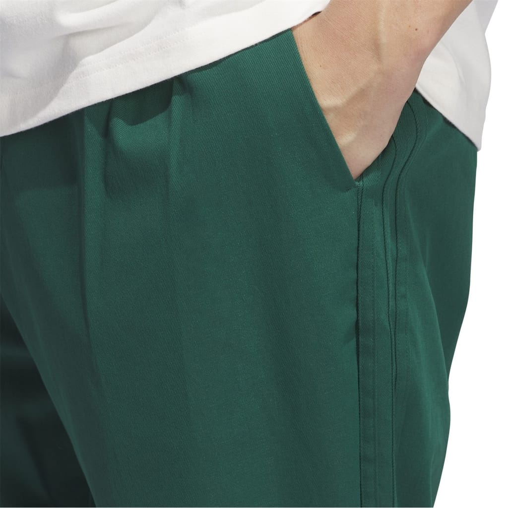 These adidas chinos are perfect for sporting activities. Featuring a zip fly, front button, and belt loops, they offer a secure fit. The regular fit design ensures comfort, while the side pockets, welt back pocket, and iconic trefoil logo add functional style. Ideal for those seeking a blend of casual and athletic wear. -