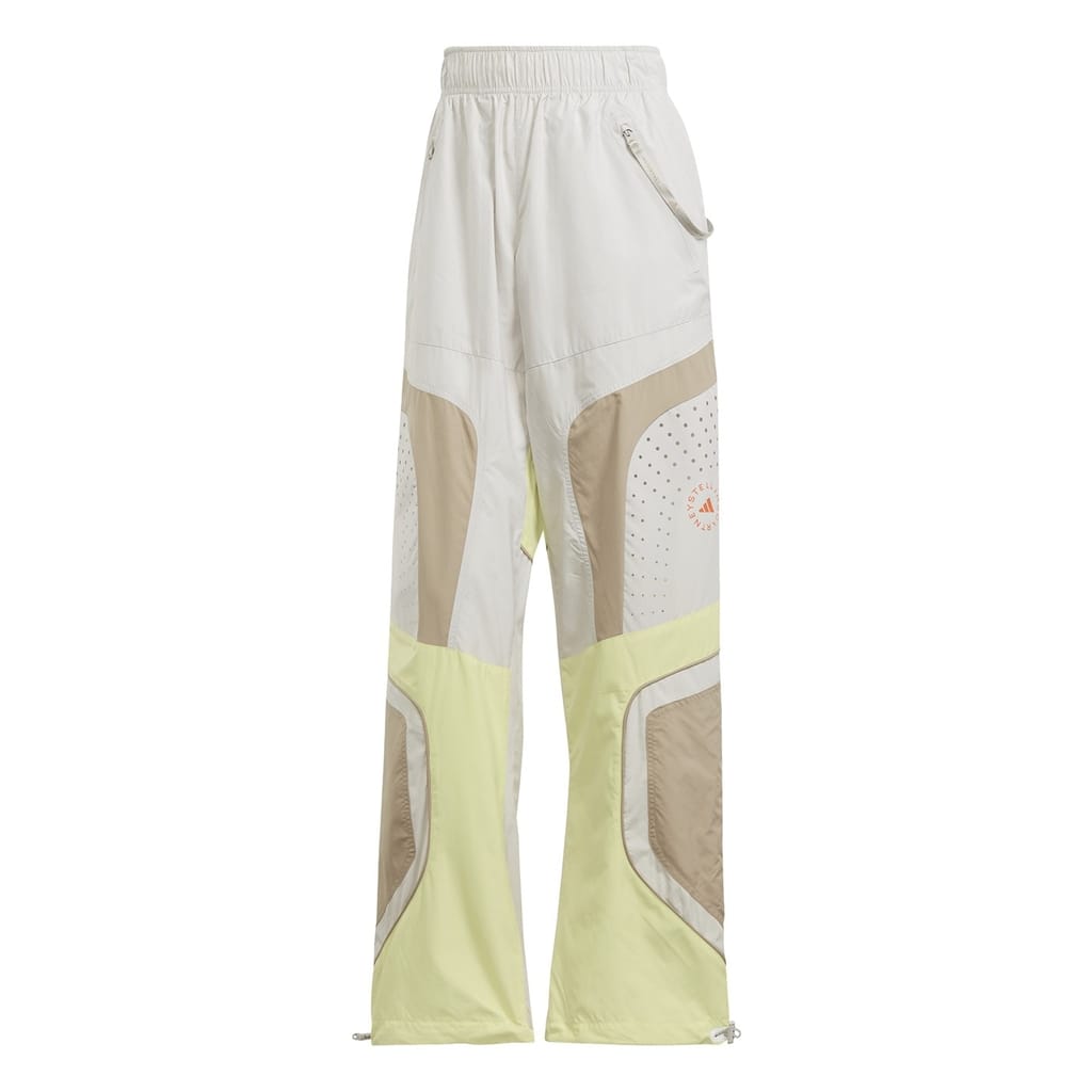 These adidas track pants feature a wide-leg cut and a stylish color block pattern. Designed with an elasticated waistband for comfort, they include practical zipped side pockets and a distinctive front logo. The woven fabric and panel detailing add a touch of sophistication, making them a versatile addition to your athletic wardrobe. -