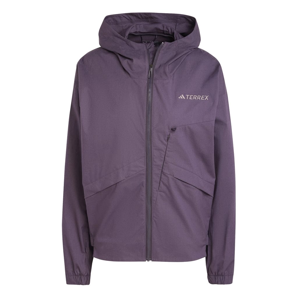 This adidas windbreaker is a short, regular fit jacket designed for functionality and style. It features a water-repellent finish, elasticated cuffs and hem, and a solid pattern. The jacket includes a front zipper closure, chest and zipped pockets, and a logo embellishment, making it a practical choice for unpredictable weather. -