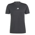This adidas top is designed for activewear and gym enthusiasts. Featuring a crew neck and short sleeves, it offers a regular fit for optimal performance. The solid pattern is complemented by a subtle logo embellishment, making it a practical choice for those seeking both style and functionality in their workout attire. -