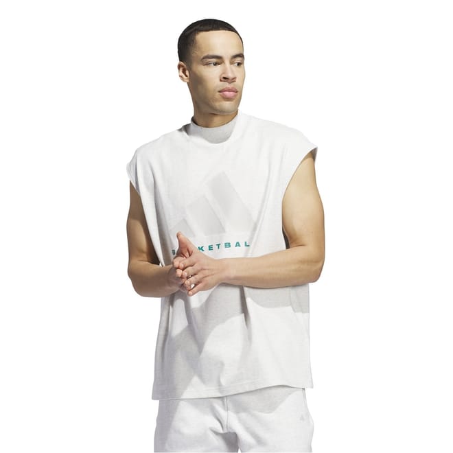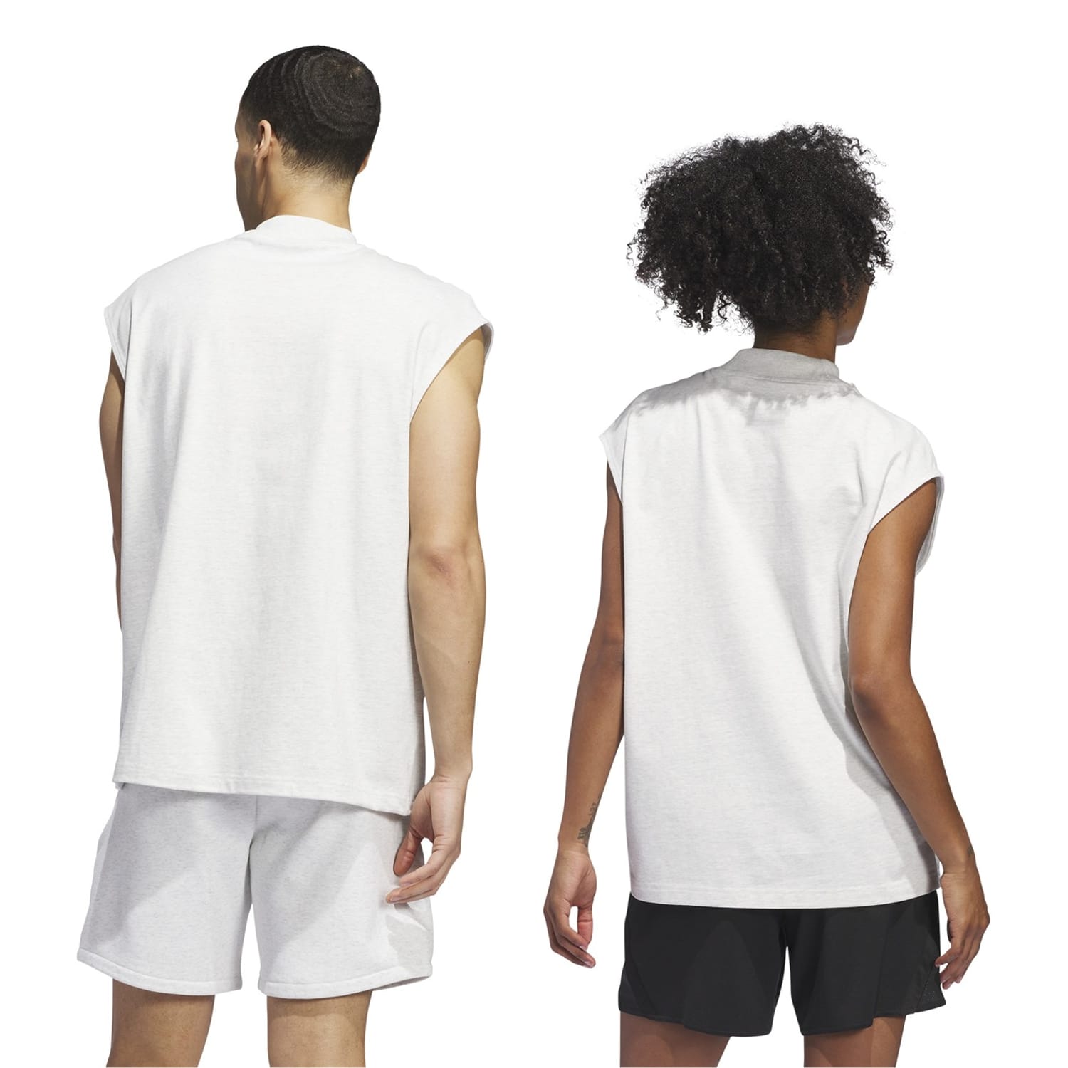 This adidas adi top is designed for performance and casual wear. Featuring a sleeveless design with a mock neck and ribbed collar, it offers a boxy fit for comfort. The top is adorned with a distinctive logo print, adding a touch of brand identity. -