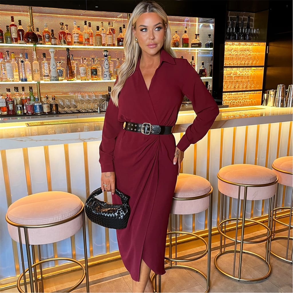 Our Belted Wrap Midi Shirt Dress is a must-have wardrobe staple. Featuring a classic shirt collar, long cuffed sleeves, a wrap top, an elasticated waist with a double eyelet belt and a midi wrap skirt with gathered side detailing. Style with boots for a casual look or dress up with your favourite heels and a matching bag for an evening occasion.