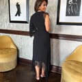 Make an entrance in our Black Asymmetric Batwing Lace Detailing Cut Out Midi Dress. Featuring a one shoulder batwing sleeve with lace trimming, round neckline, a cut out waist lace detail, a midi skirt with a zig zag lace hem and a zip up back. Simply style with heels and a matching bag for a show stopping look perfect for parties or your next event.