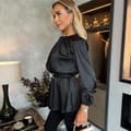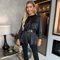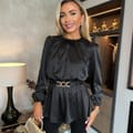 Our flattering Satin Long Sleeve Gold Detail Belt Top will see you from the office to Friday night drinks. Featuring long elasticated cuff sleeves, an elasticated waist with an elasticated belt with gold detailing and a button back neck fastening. Style with simple jewelry, jeans and some heels for an effortless dressed up look!