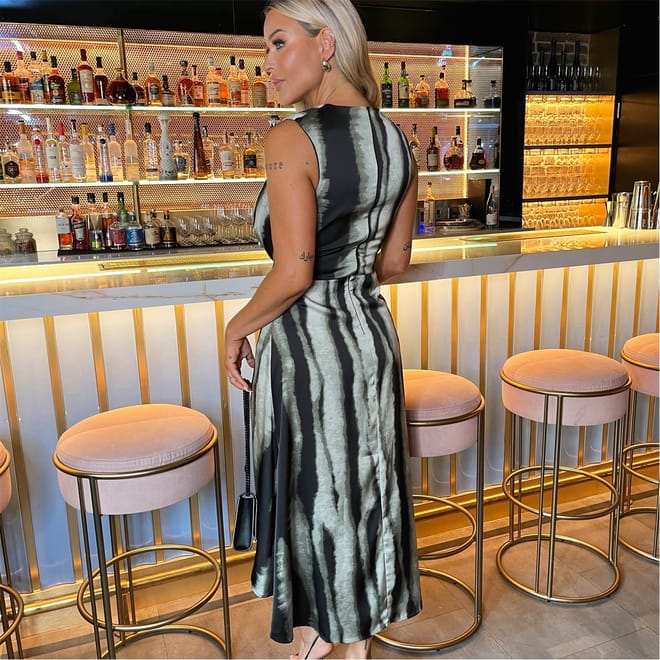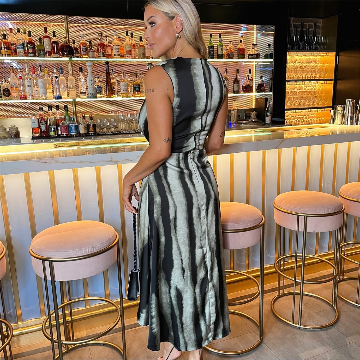 Our Multi Smudged Stripe Print Shoulder Padded Gathered Waist Midi Dress is the perfect addition to your occasion wardrobe. Featuring a sleeveless top with a round neckline, shoulder pads, a zip up back, an elasticated waist and a gathered side midi skirt. Team it with some heels and a matching clutch the complete the look.