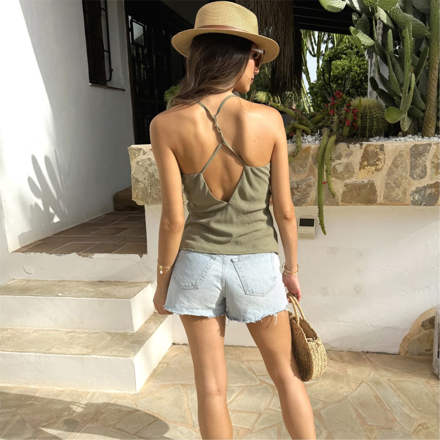 Our Strappy Cowl Neck Twist Back Cami Top is the perfect pick for this summer. Featuring our lightweight crinkle fabric, a cowl neckline and a strappy twist back. Wear it with jeans and flats for the day, or switch to heels for the evening.