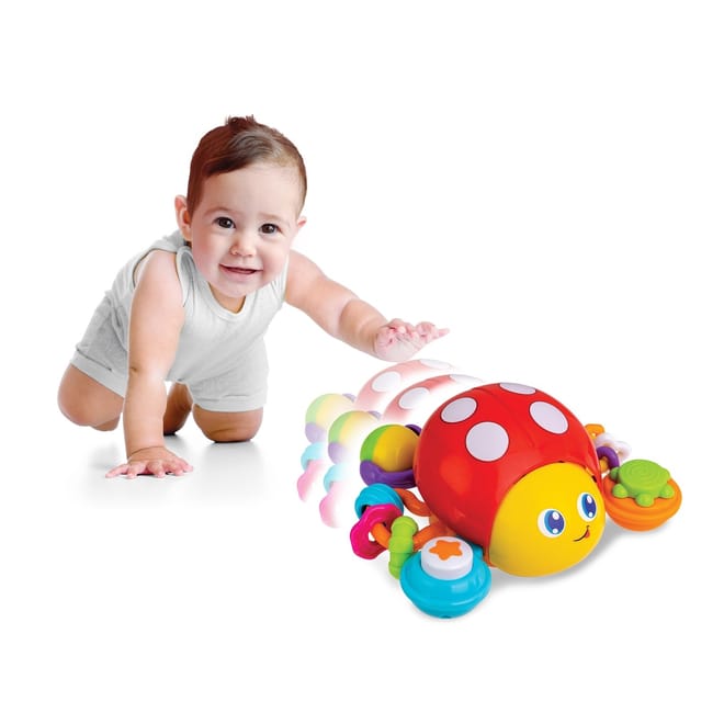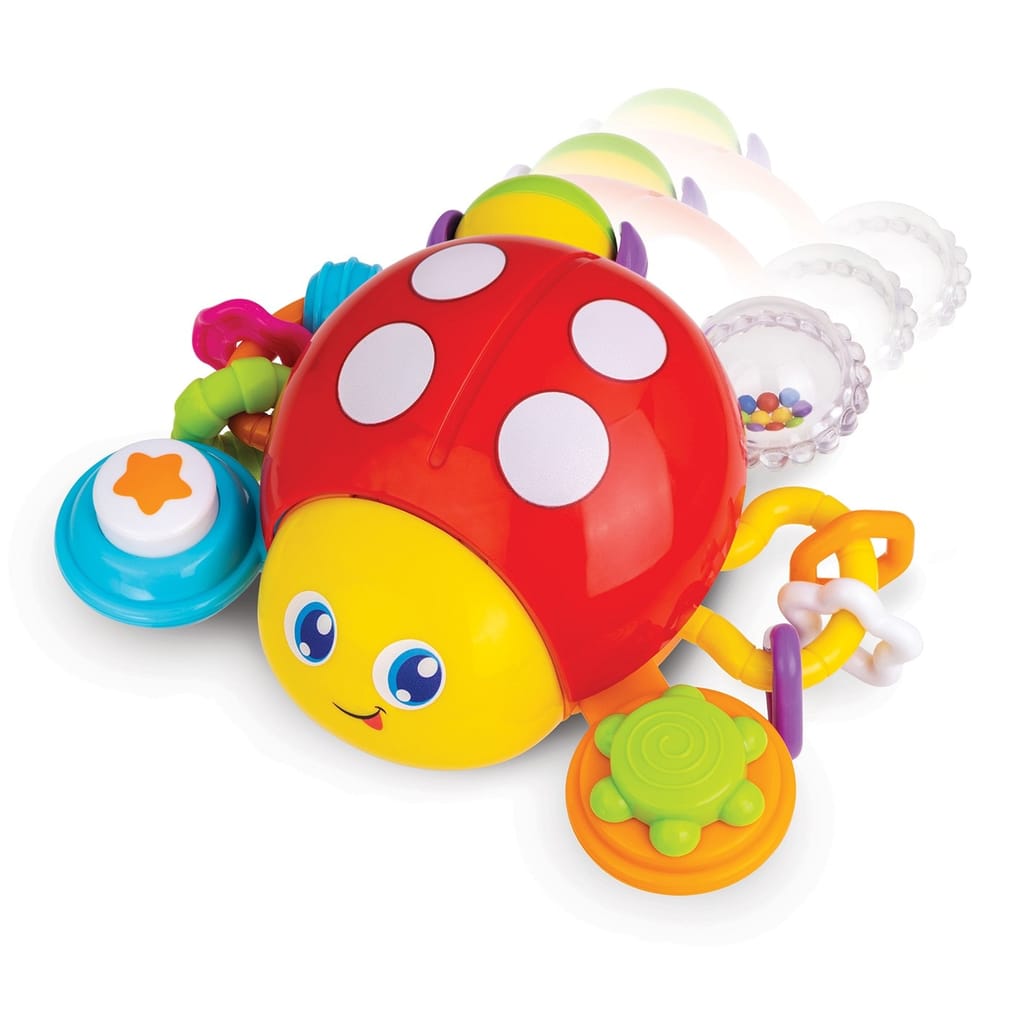 With its moveable gearshift, horn button, this hands-on, realistic and easy to hold baby driver is sure to keep your toddler amused. It attaches easily to a pram, car seat or a cot, thanks to its hook and loop fastening. It features an ignition key with fun sound effects, your toddler can also press the two light up buttons play cheerful melodies, it also has a baby safe flip up frog mirror. Requires 2 x AAA batteries, supplied. Suits ages 3 months +. -