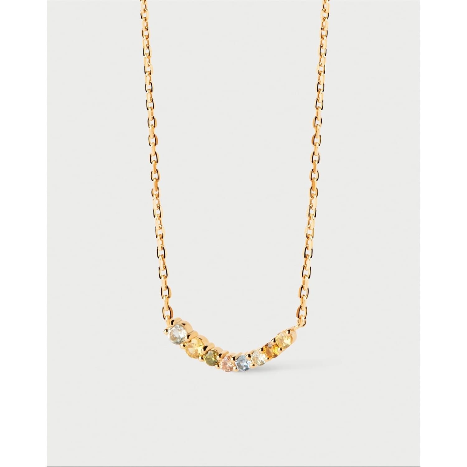 Gold-plated dainty necklace with a wavy set of multicolour cubic zirconia's