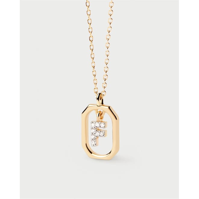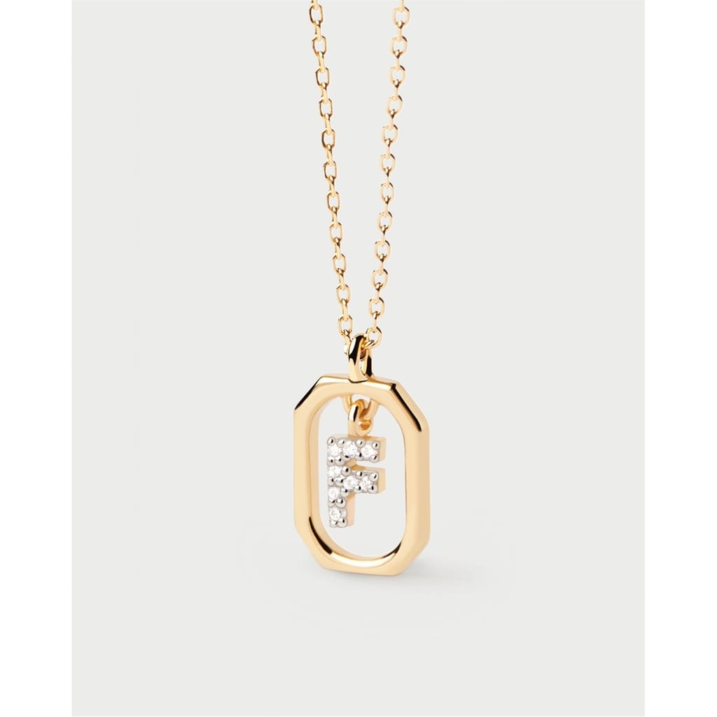 Small initial letter necklace in zirconia inside gold-plated silver octagonal pendant