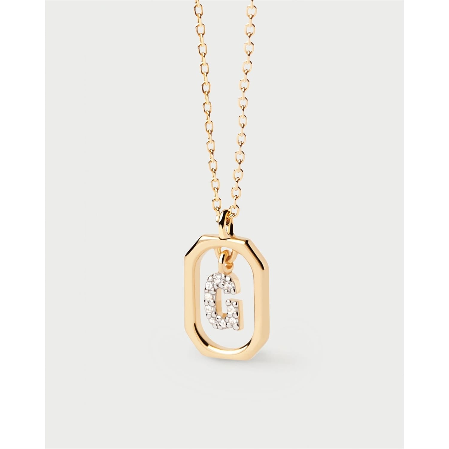 Small initial letter necklace in zirconia inside gold-plated silver octagonal pendant