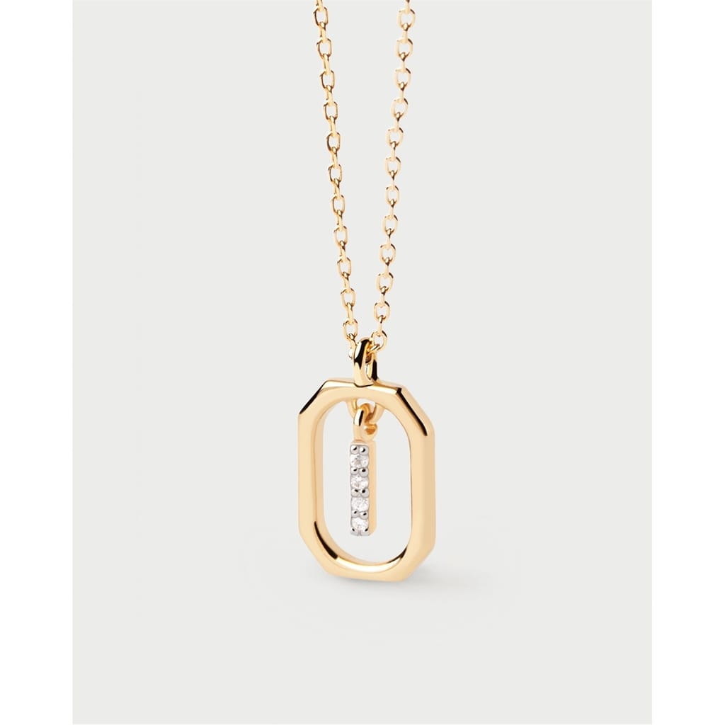Small initial letter necklace in zirconia inside gold-plated silver octagonal pendant