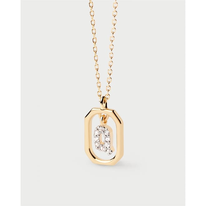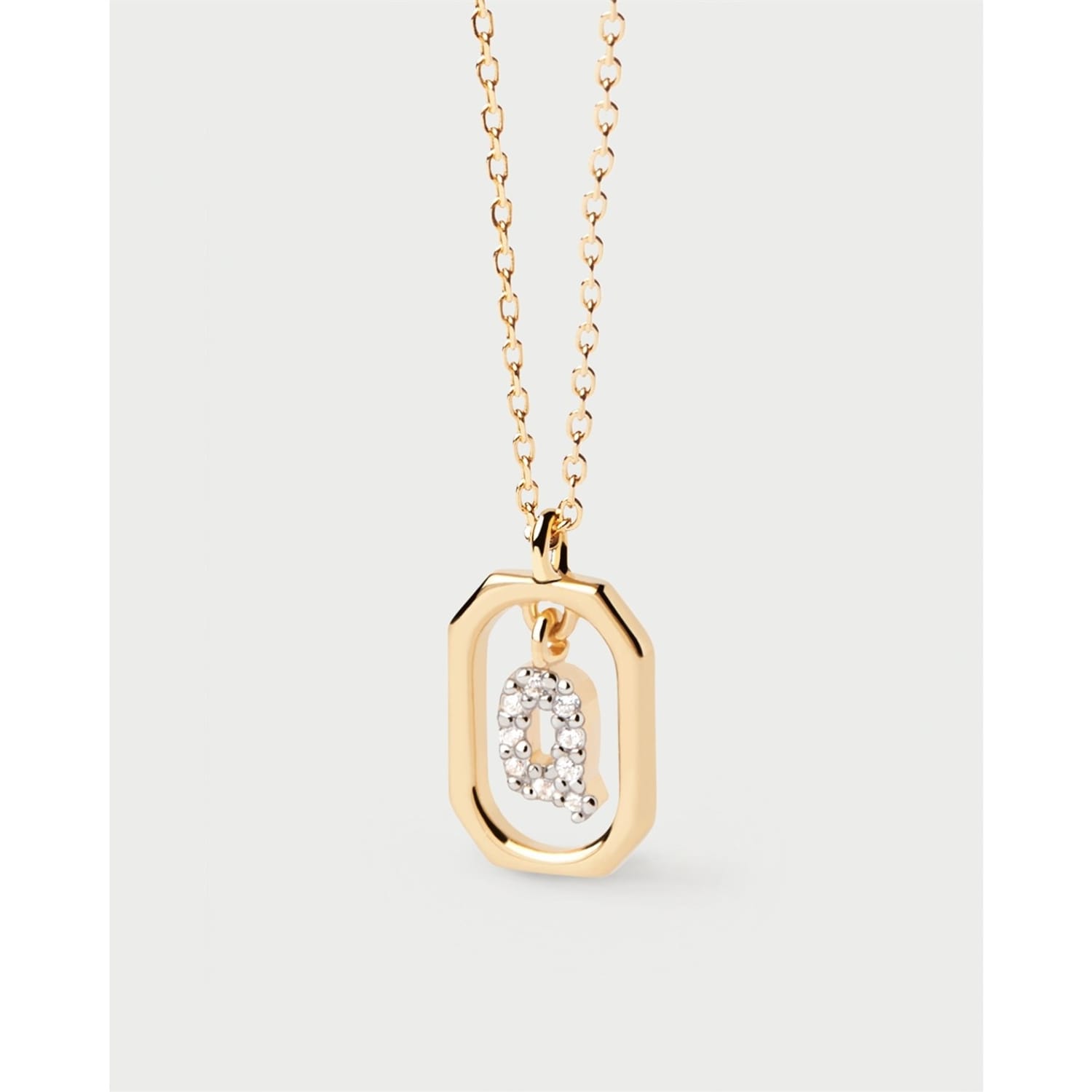 Small initial letter necklace in zirconia inside gold-plated silver octagonal pendant