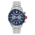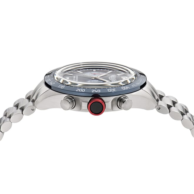 This wrist watch features a striking blue dial, complemented by a durable steel bracelet strap. Designed with a water resistance of up to 100m, it is perfect for various environments. The analogue display ensures a classic and timeless look, making it a reliable choice for those who appreciate both style and functionality. -
