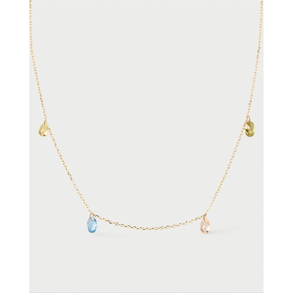 Gold-plated chain necklace with four multicolor zirconia drop pendants