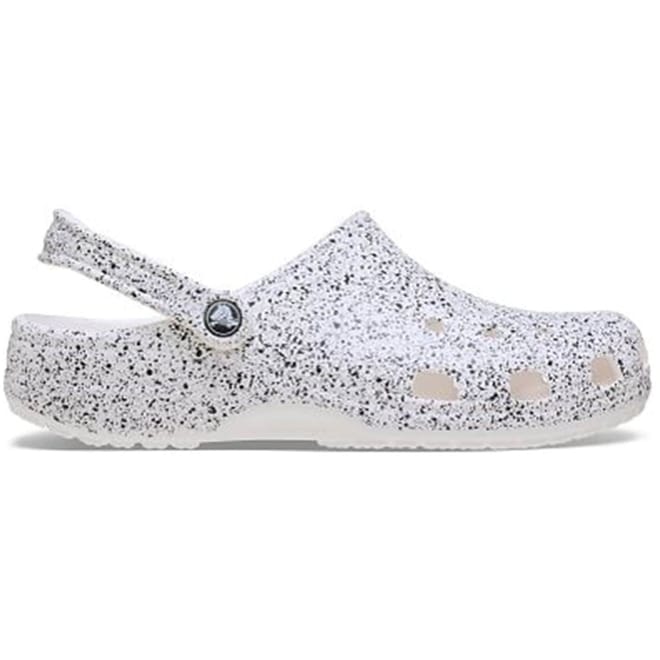 Discover the unique blend of style and comfort with Crocs clogs. These shoes feature a speckled pattern, adding a distinctive touch to your footwear collection. The round, closed toe design ensures a snug fit, while the shuv style offers a modern twist. Perfect for those seeking a versatile and practical option for everyday activities. -