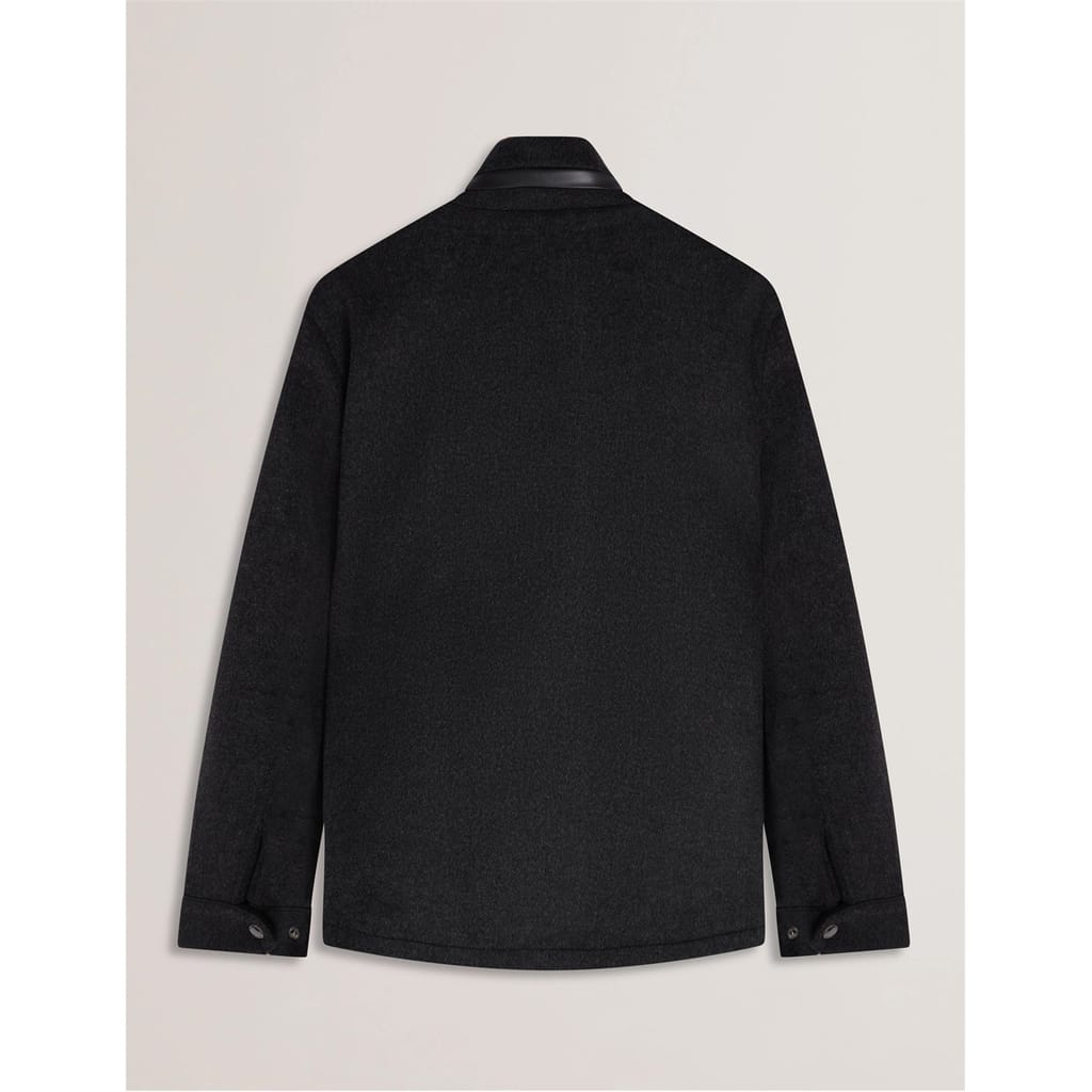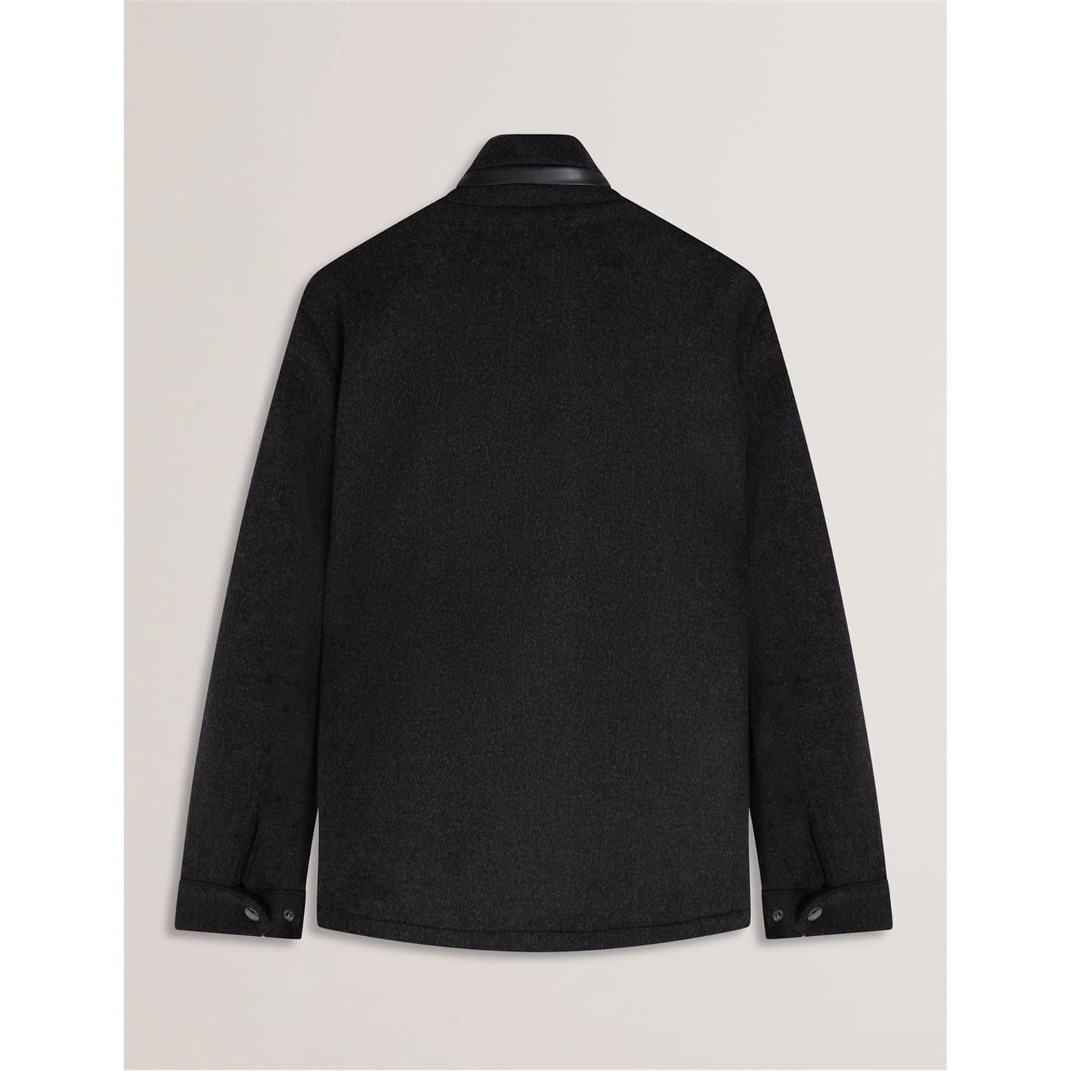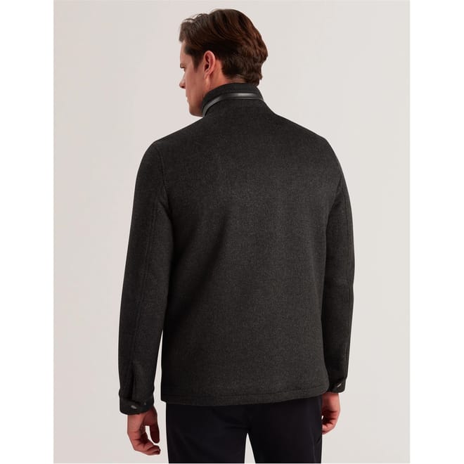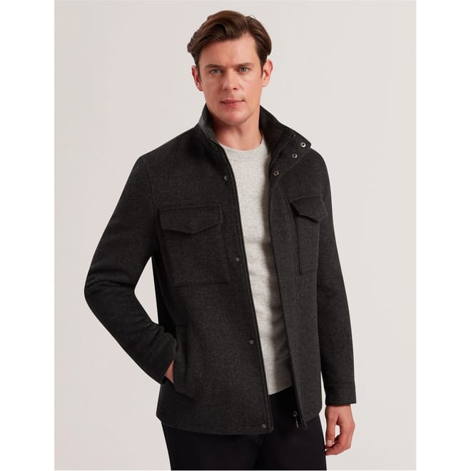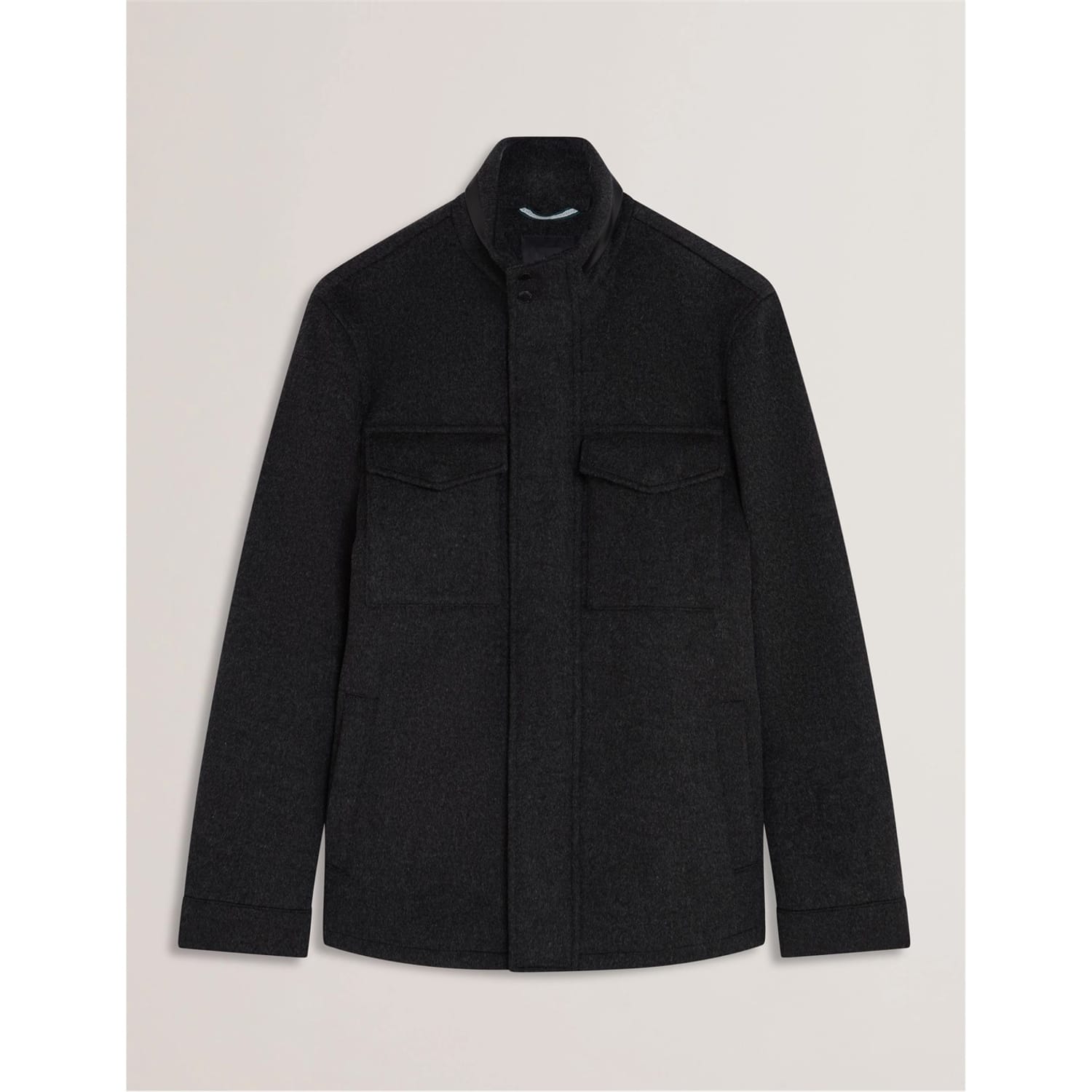 Ted Baker's overcoat features a high collar and a straight hem, offering a regular fit. This solid short coat is equipped with a snap button and zipper closure, providing both style and functionality. The design includes practical flap pockets, making it a versatile addition to your wardrobe. -