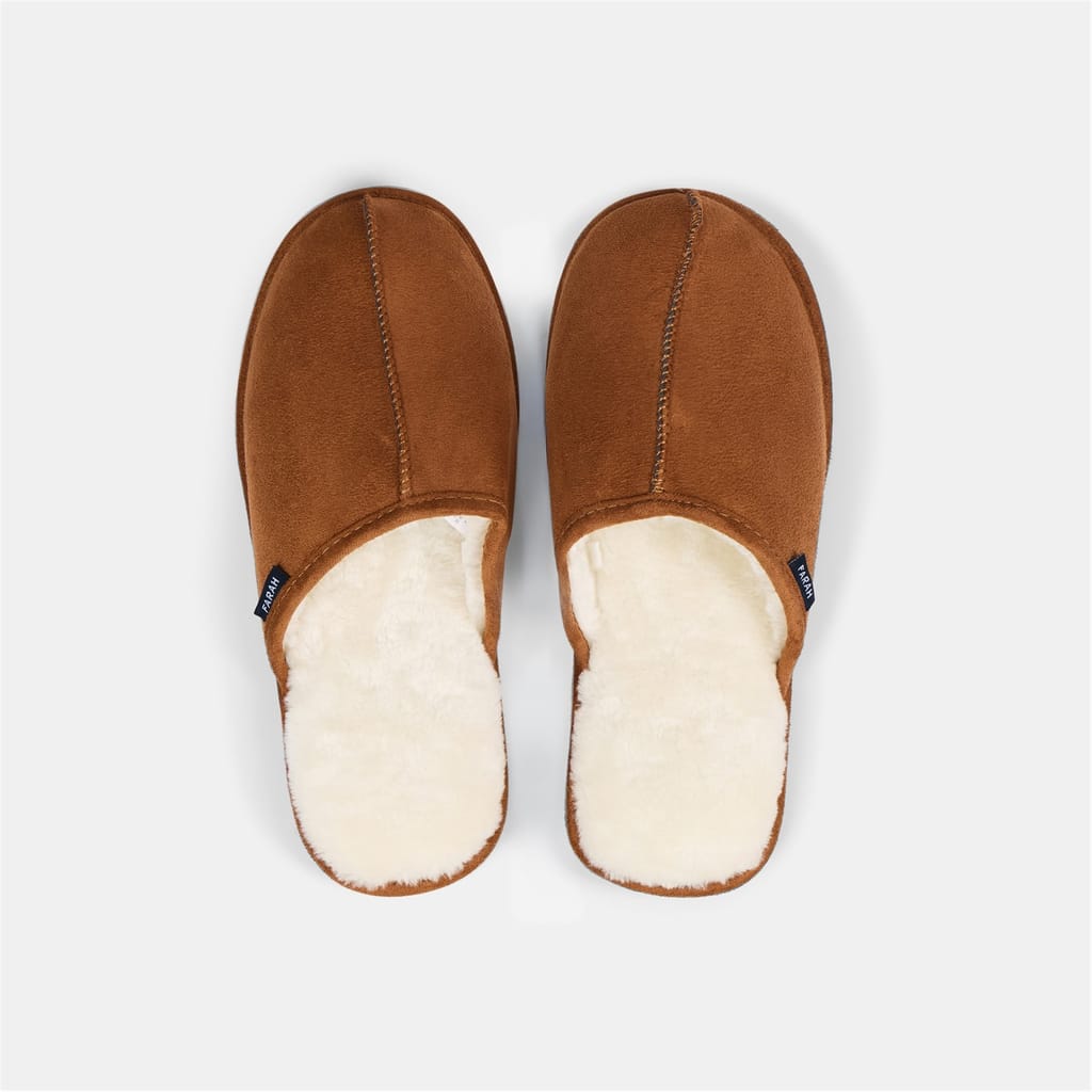 Treat your feet to the ultimate in comfort and luxury with the Farah Ahlers Slippers. Designed with both relaxation and style in mind, these slippers feature a rich tan color that complements any loungewear. The soft faux fur lining adds a cosy touch, enveloping your feet in warmth and comfort from the moment you slip them on. These slippers are crafted with a textile upper sole, offering a durable yet soft feel that provides support throughout the day. Featuring the iconic Farah logo, they add a touch of elegance and sophistication to your casual wear.