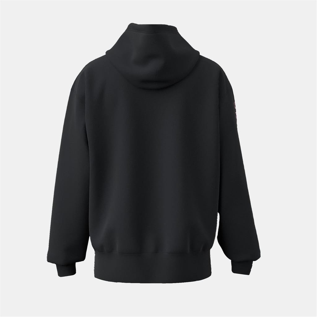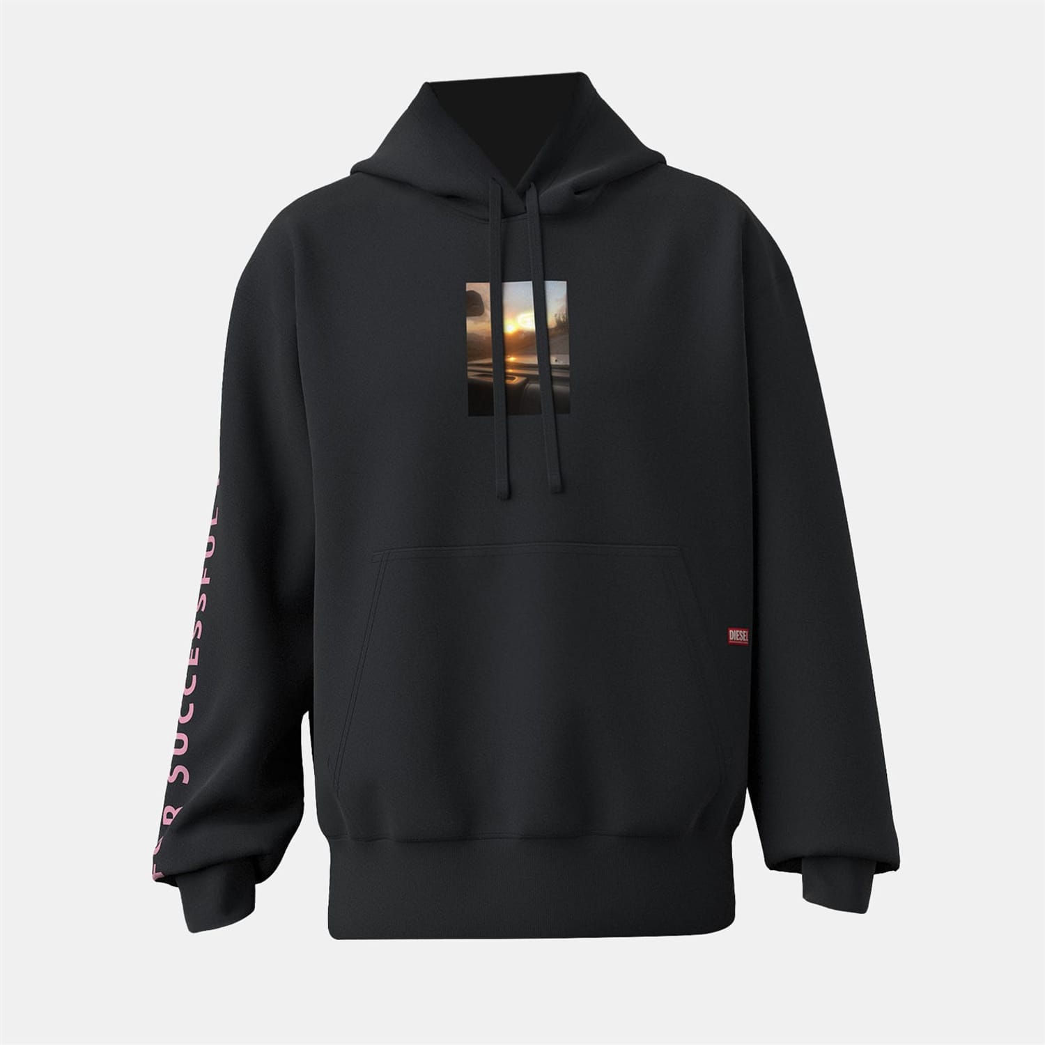 This Diesel top features a hooded neck with a drawstring closure, offering a relaxed oversize fit. The long sleeves are complemented by ribbed cuffs, while the ribbed hem adds a touch of structure. A standout graphic print with a cassette photo embellishes the design, and a practical kangaroo pocket completes the look. -