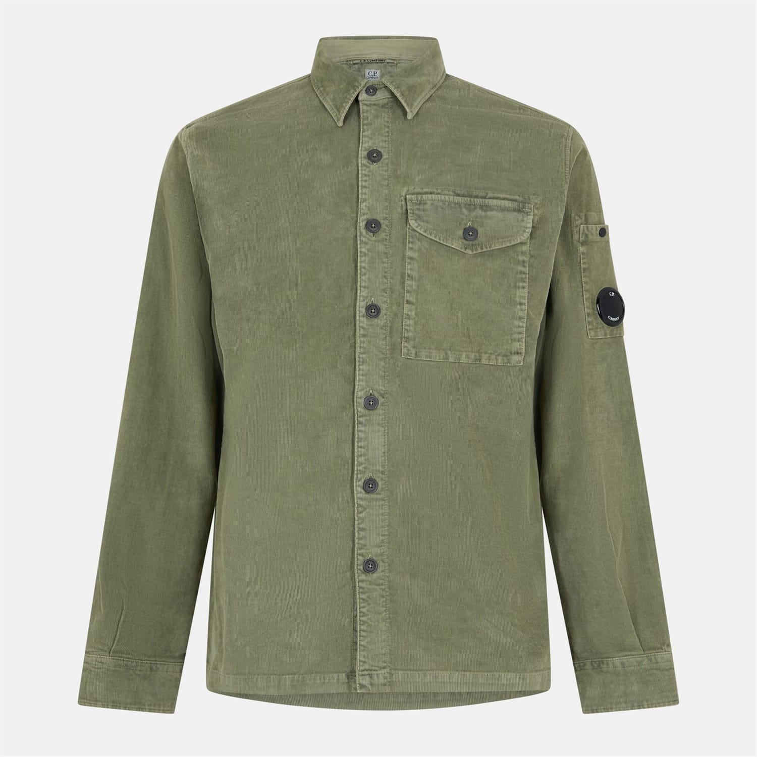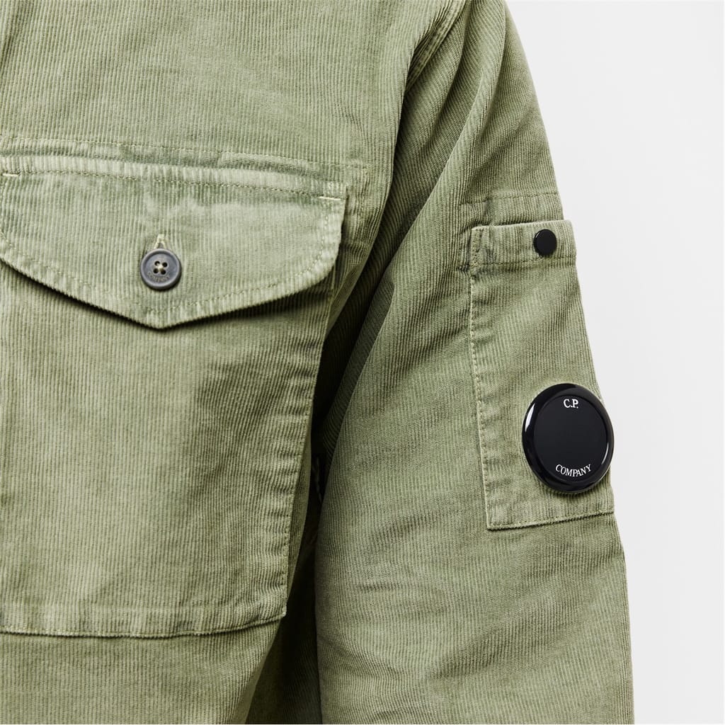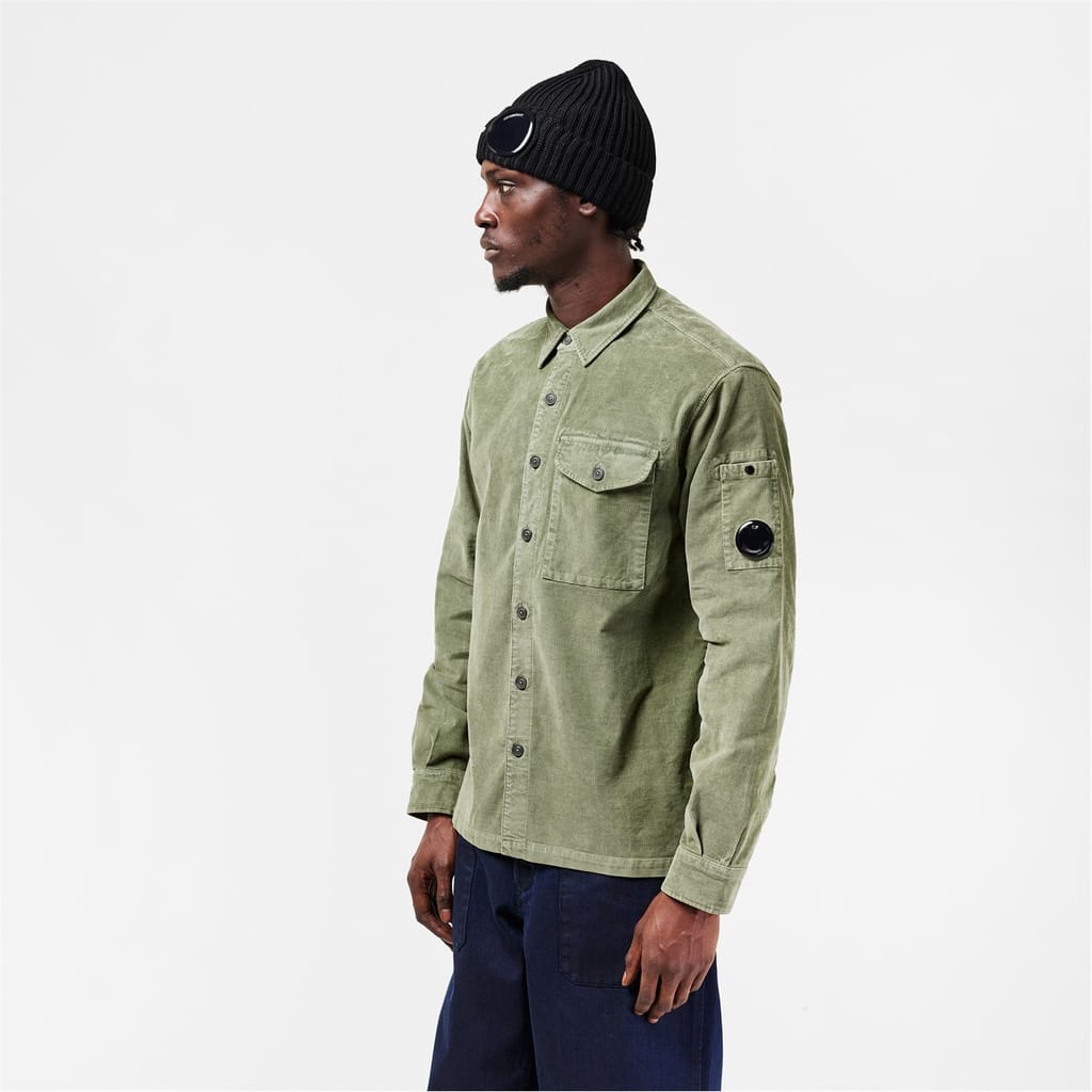 C.P Company's single pocket cord shirt with a lens is a popular piece. With black buttons matching the lens, this stylish piece is an essential wardrobe filler. -