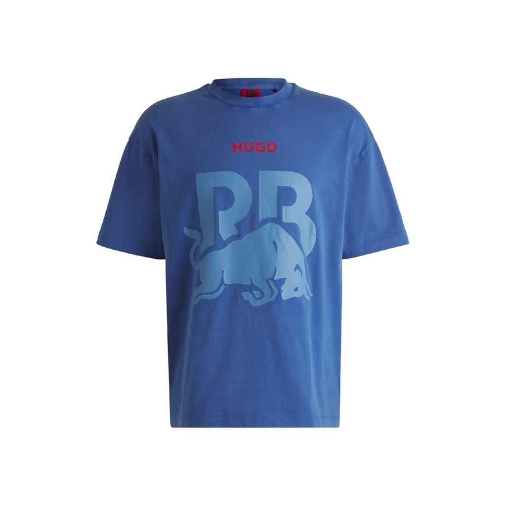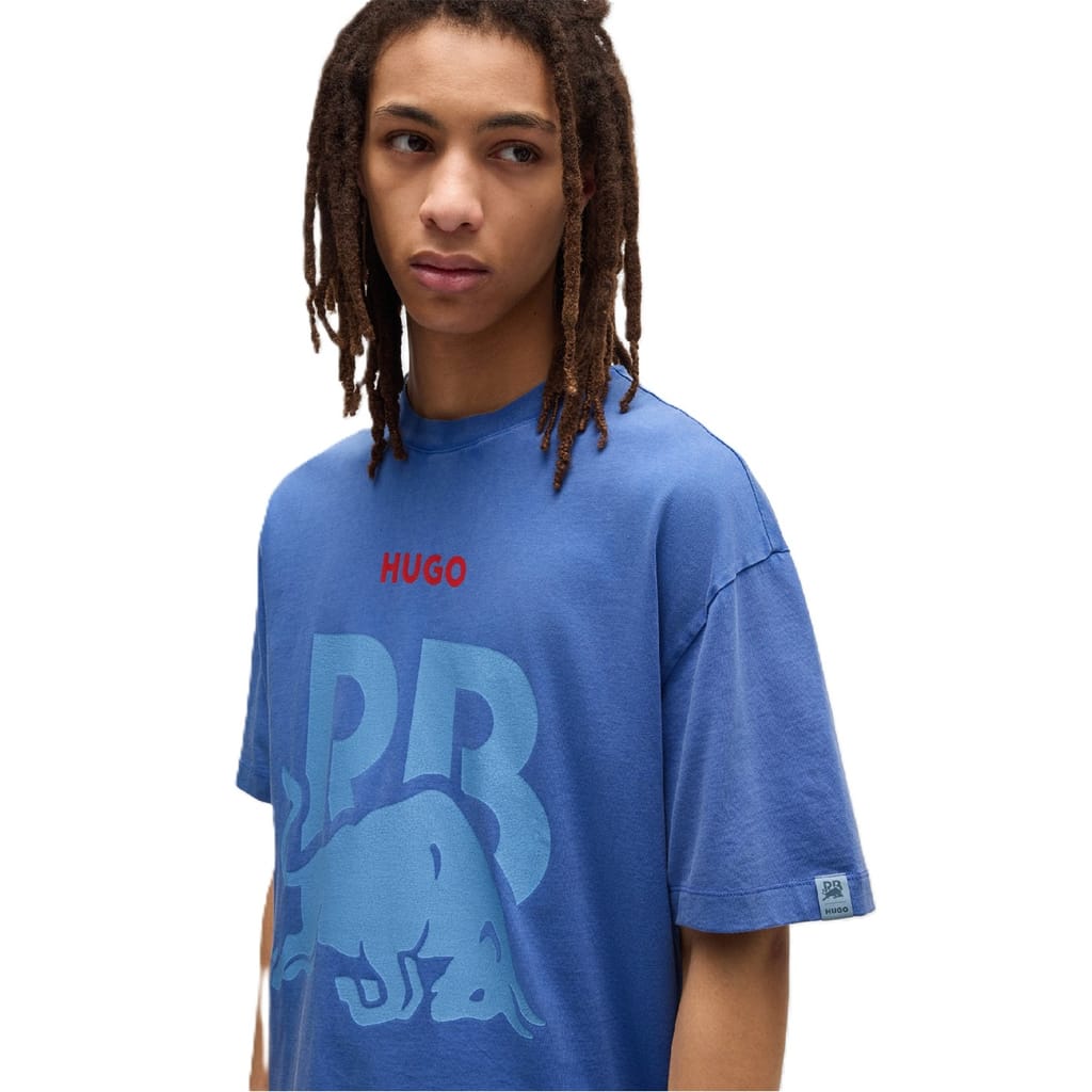 This Hugo top is a casual essential, featuring a distinctive wash and graphic print. Designed with a drop shoulder and short sleeves, it offers a relaxed boxy fit. The crew neck and ribbed collar add a touch of classic style, while the straight hem completes the look. -