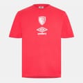 This Castore top is designed for performance with a regular fit and short sleeves. It features a crew neck and a straight hem. The top is adorned with a distinctive logo print and shield embellishment, adding a touch of style to its functional design. -