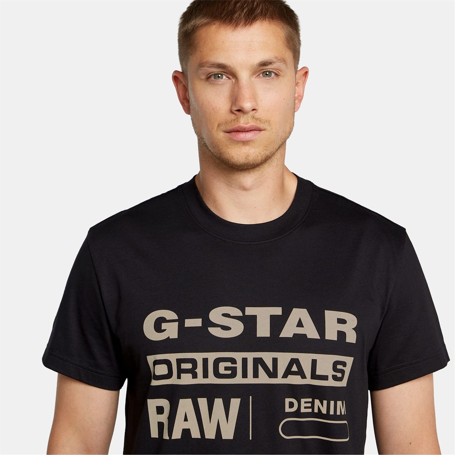 Discover the casual charm of G-Star tops with this regular fit piece. Featuring a crew neck and short sleeves, it showcases a striking logo print and text graphic. The ribbed collar adds a touch of detail, making it a versatile addition to your wardrobe. -