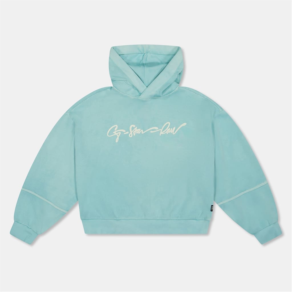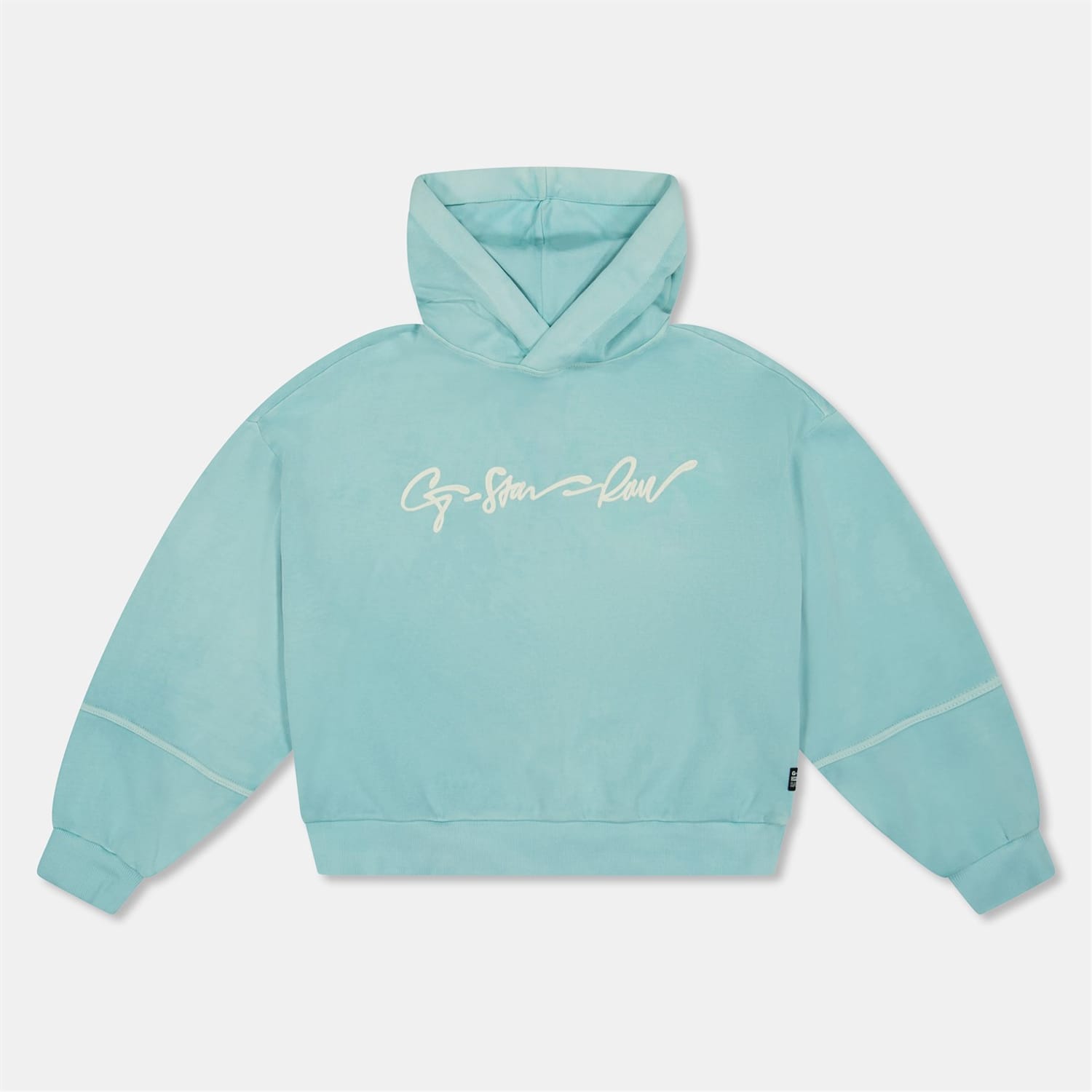This G-Star top features a hooded neck and long raglan sleeves, offering a relaxed fit. The design includes a ribbed cuff and banded hem for added comfort. Adorned with a signature logo print, it showcases a distinctive style. -