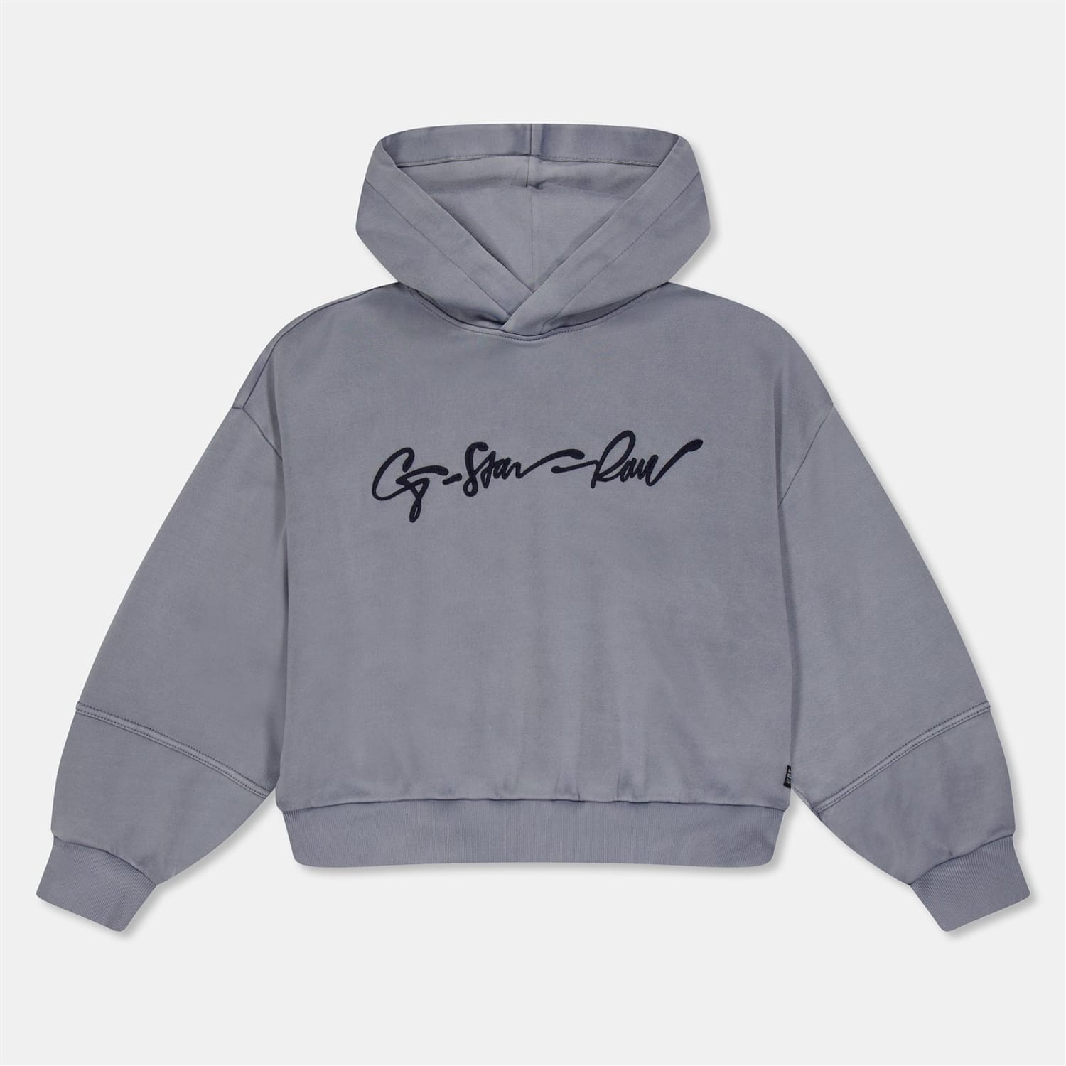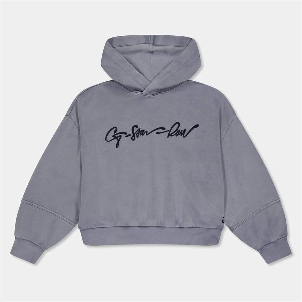This G-Star top features a hooded neck and long sleeves with a drop shoulder design. The boxy fit is complemented by ribbed cuffs and a ribbed hem. Adorned with a logo print, it offers a stylish yet casual look. -