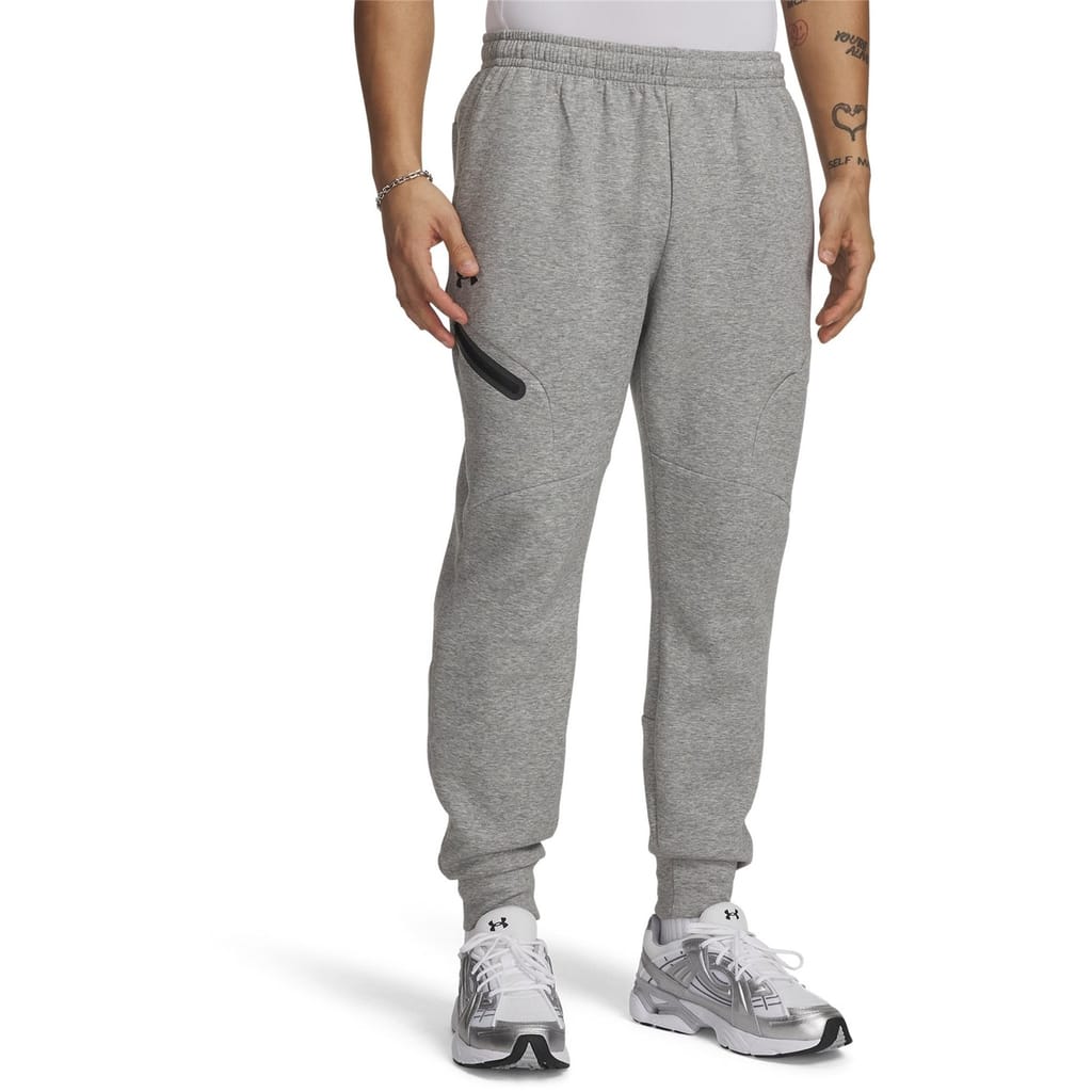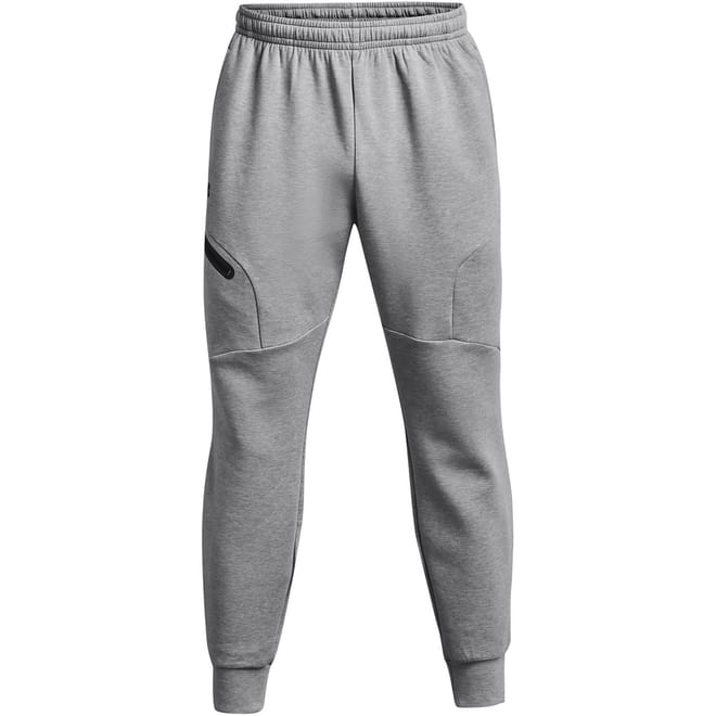 - The concealed elastane waistband with adjustable internal lacing ensures a secure and personalized fit every time. Equipped with open hand pockets and a zip pocket in the right hip, these joggers offer convenient storage for your essentials. The narrow legs offer a sleek and modern look, while the solid block colourway adds a touch of versatility. To complete the design, the Under Armour logo on the right leg showcases the brand's commitment to excellence and innovation.