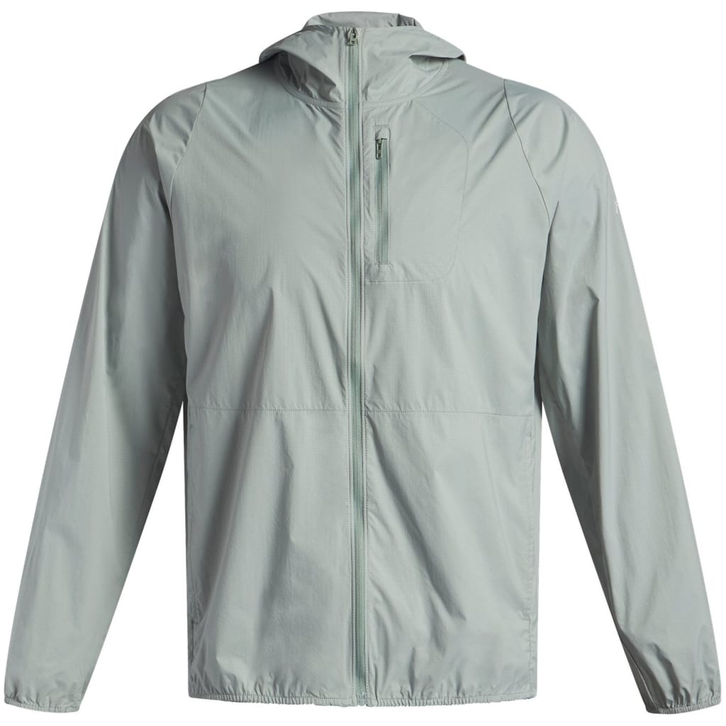 The Under Armour Launch Lightweight Jacket delivers essential protection in a packable windbreaker design. Featuring UA Storm technology that repels water while maintaining breathability, this windproof performer packs neatly into its left chest pocket for on-the-go convenience during your run. The adjustable hood with brim ensures visibility remains uncompromised in challenging conditions.