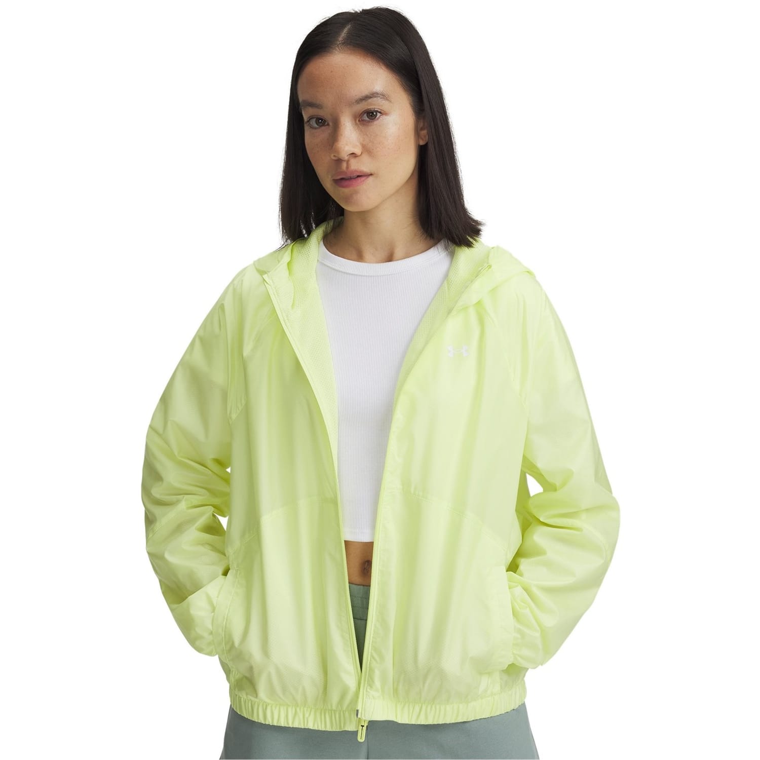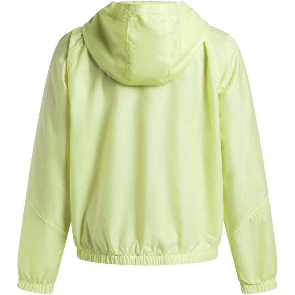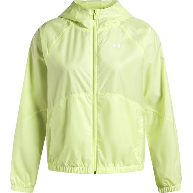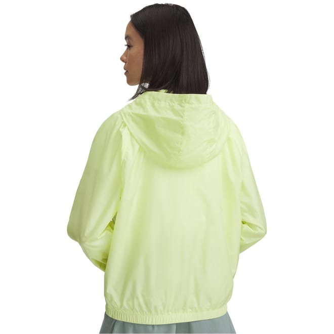 The Under Armour Women's Rival Sport Windbreaker jacket delivers essential weather protection with an oversized fit. Featuring water and wind resistant technology with Storm fabrication, this mid-length hooded design has functional pockets with a secure zip closure for athletic performance.