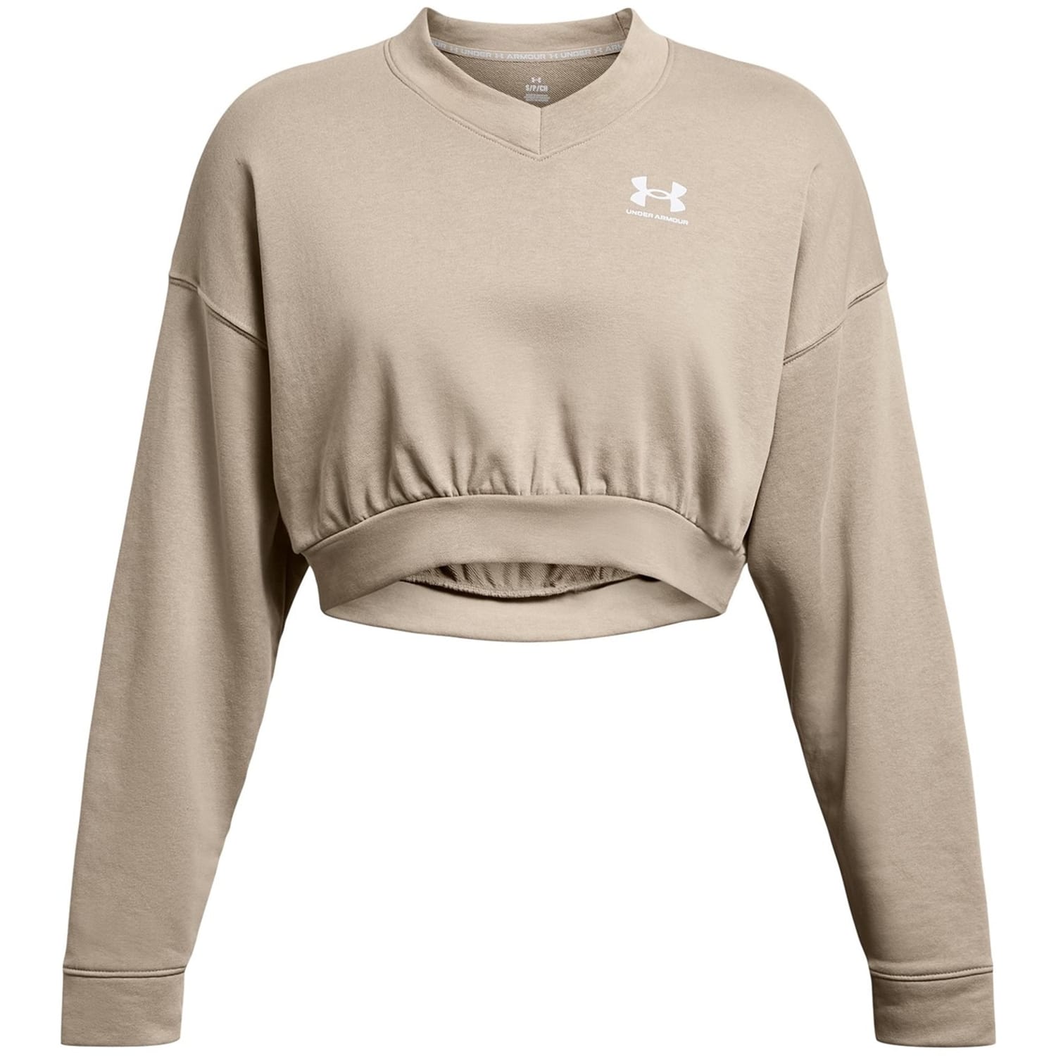 Under Armour's Rival Terry Crew-Neck Cropped Sweatshirt delivers athletic-inspired comfort in a contemporary style. The shortened length creates a modern profile while the soft fabric offers everyday wearability with a relaxed fit great for casual wear.