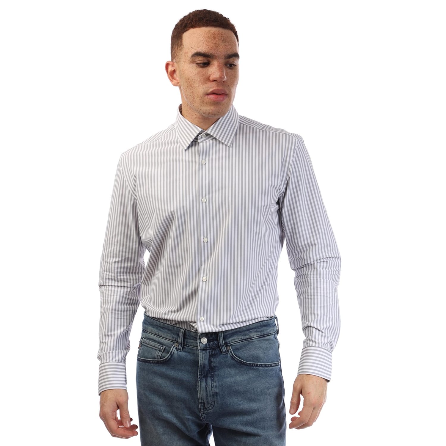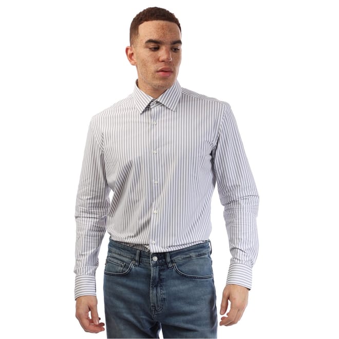 This Boss top is a sophisticated choice for formal occasions. Featuring a regular fit with long shirt sleeves and a full button closure, it offers a classic look. The point collar and barrel cuffs add a refined touch, while the vertical stripe pattern enhances its elegance. The straight hemline completes the design, making it a versatile addition to any wardrobe. -