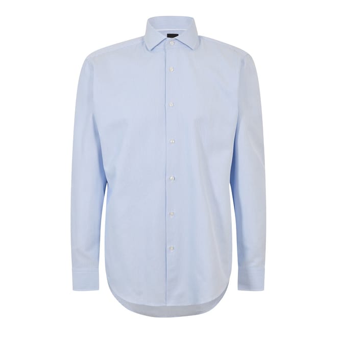 The Boss Joe top is a sophisticated choice for formal occasions. Featuring a spread collar and long shirt sleeves, it offers a regular fit for comfort and style. The solid pattern adds a classic touch, while the full button closure and barrel cuffs enhance its elegant design. The curved hemline completes the look, making it a versatile addition to any wardrobe. -