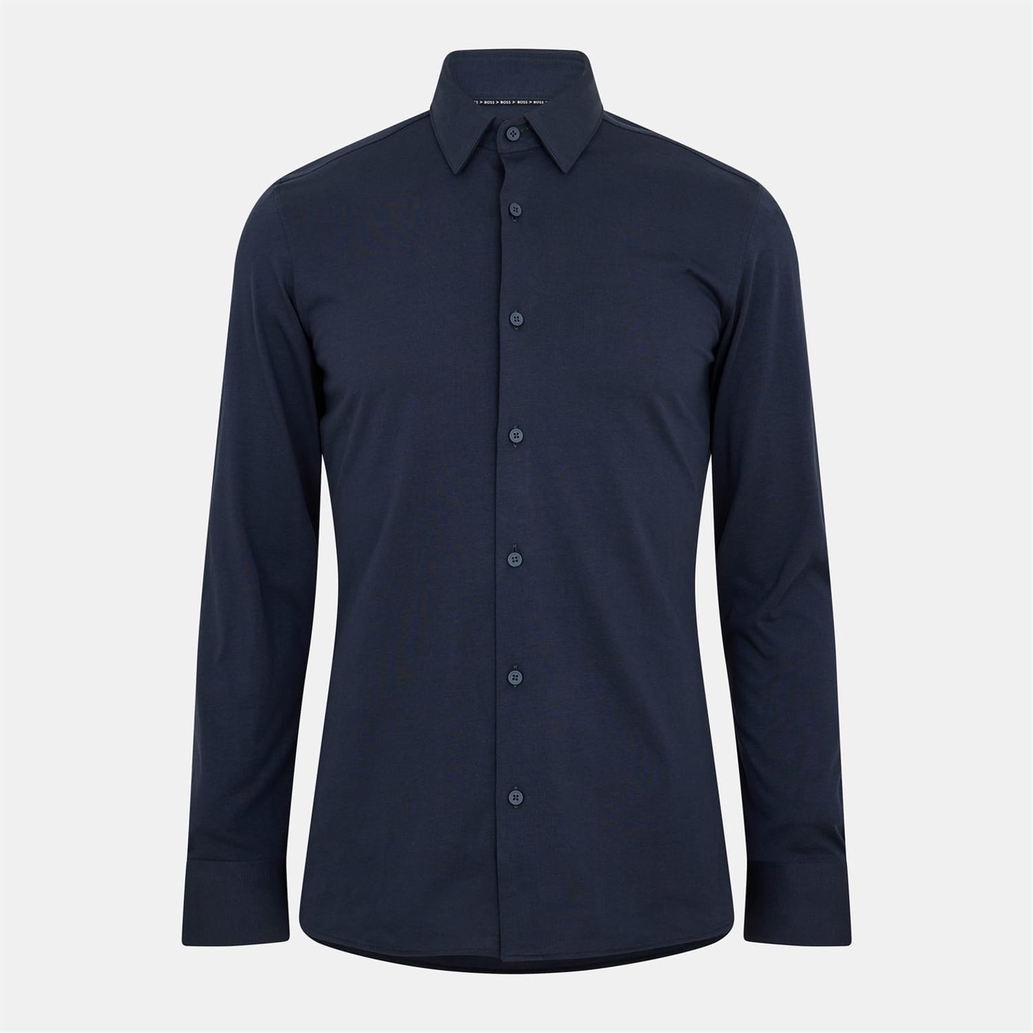 This Hank Kent Slim Fit Shirt from BOSS would make a welcome addition to your smart wardrobe. Crafted in a soft cotton-rich jersey with performance-stretch properties, this shirt is cut in a streamlined fit for a contemporary silhouette and features a pointed collar with a central button down closure, long sleeves, buttoned cuffs and a curved hemline for a classic style. The inner collar is trimmed with branded piping for subtle brand recognition. Machine washable at 30 degrees.