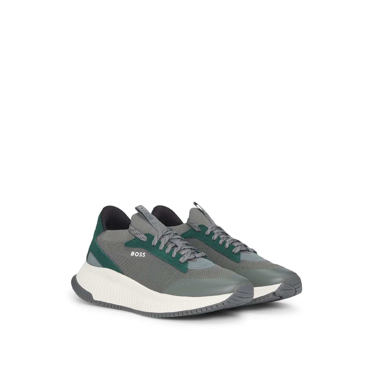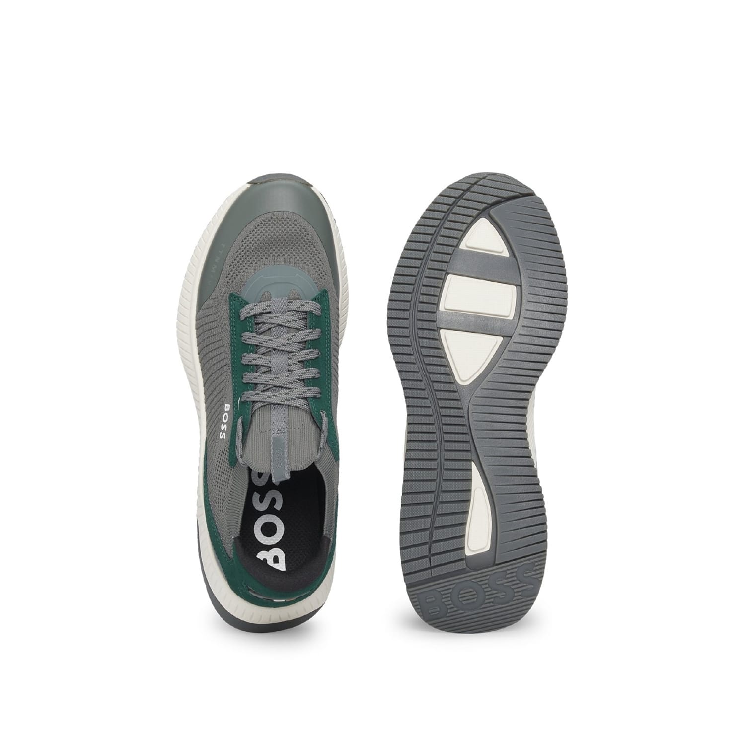 Expertly constructed with a ridged outsole and brand detailing, the BOSS TTNM Evo Trainers deliver footwear with a sporty profile and styling. These runners complement casual outfits perfectly.